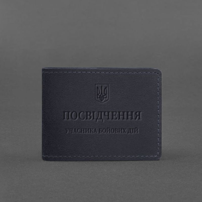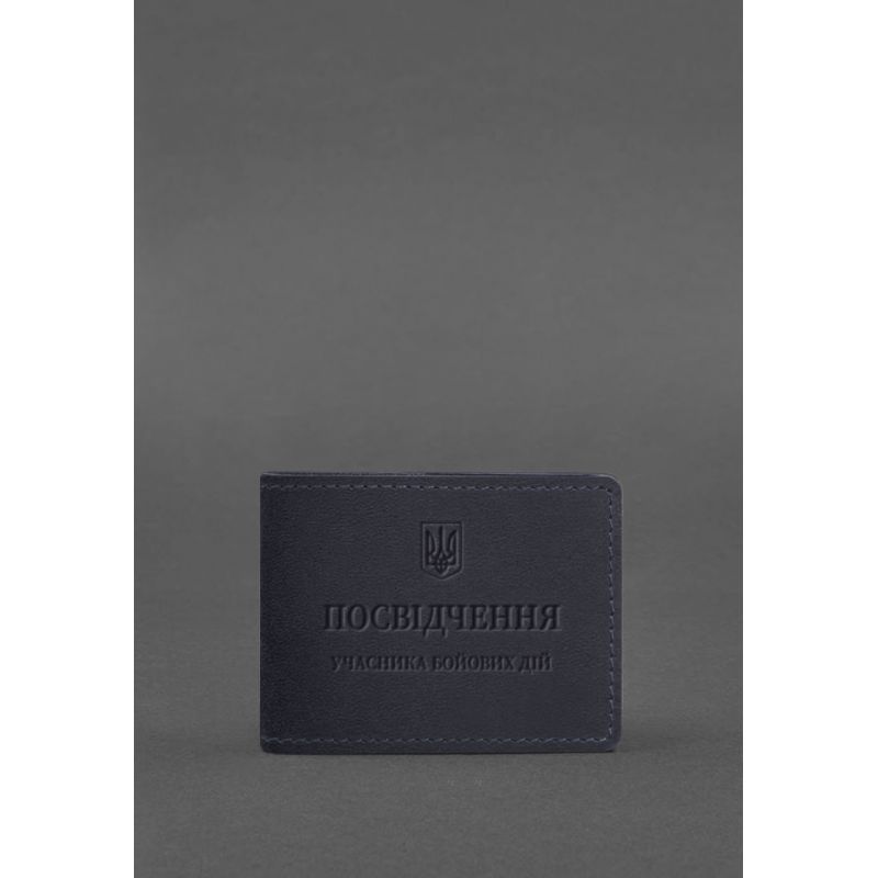 Кожаная обложка для удостоверения участника боевых действий (УБД) темно-синяя Crazy Horse