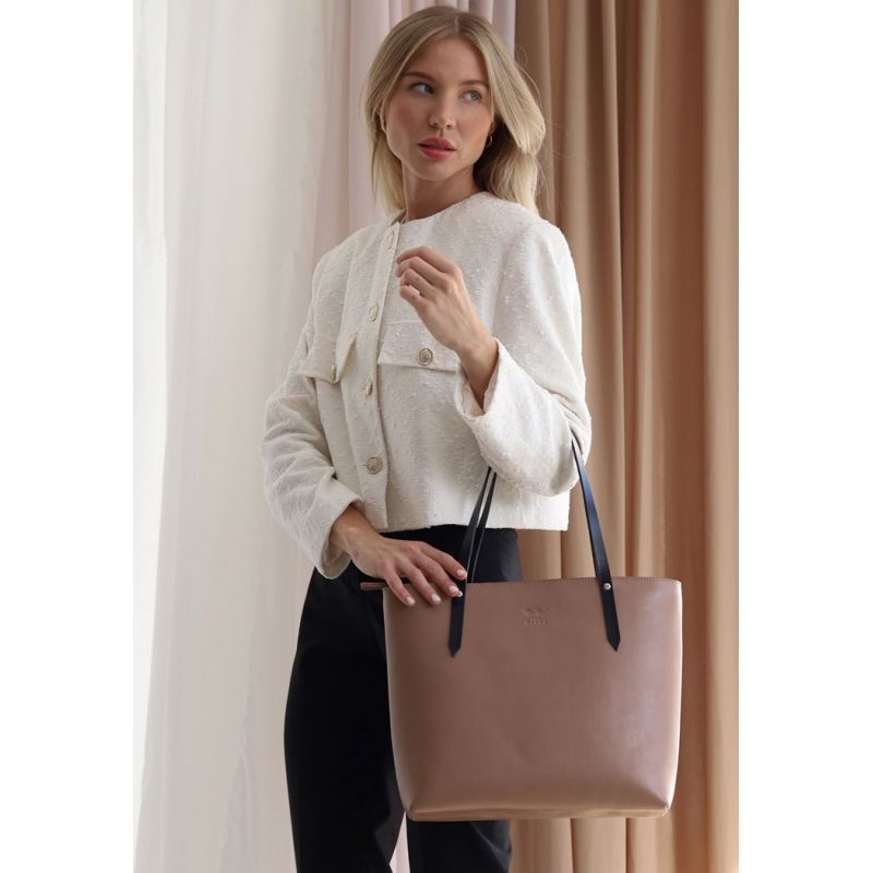 Внутреннее наполнение и функциональность шоппера не уступает внешнему виду в удобстве и практичности. Основное отделение закрывается на молнию, внутри стильная хлопчатобумажная подкладка и два вместительных кармана.