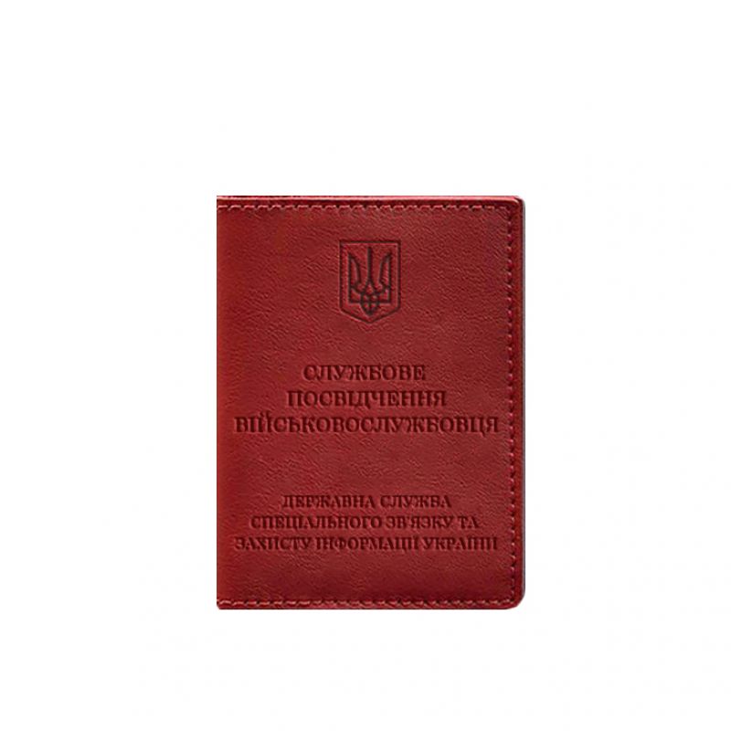 Кожаная обложка для служебного удостоверения военнослужащего Госспецсвязи красная