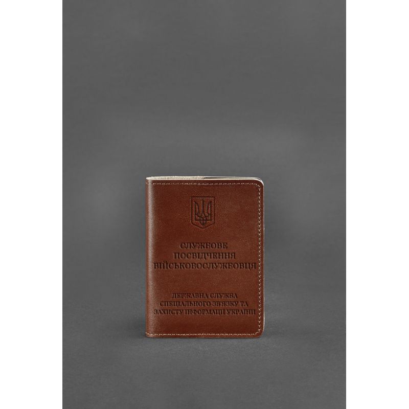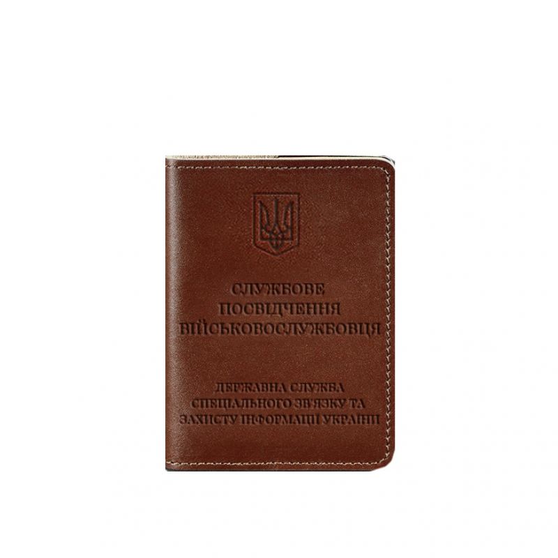 Кожаная обложка для служебного удостоверения военнослужащего Госспецсвязи светло-коричневая