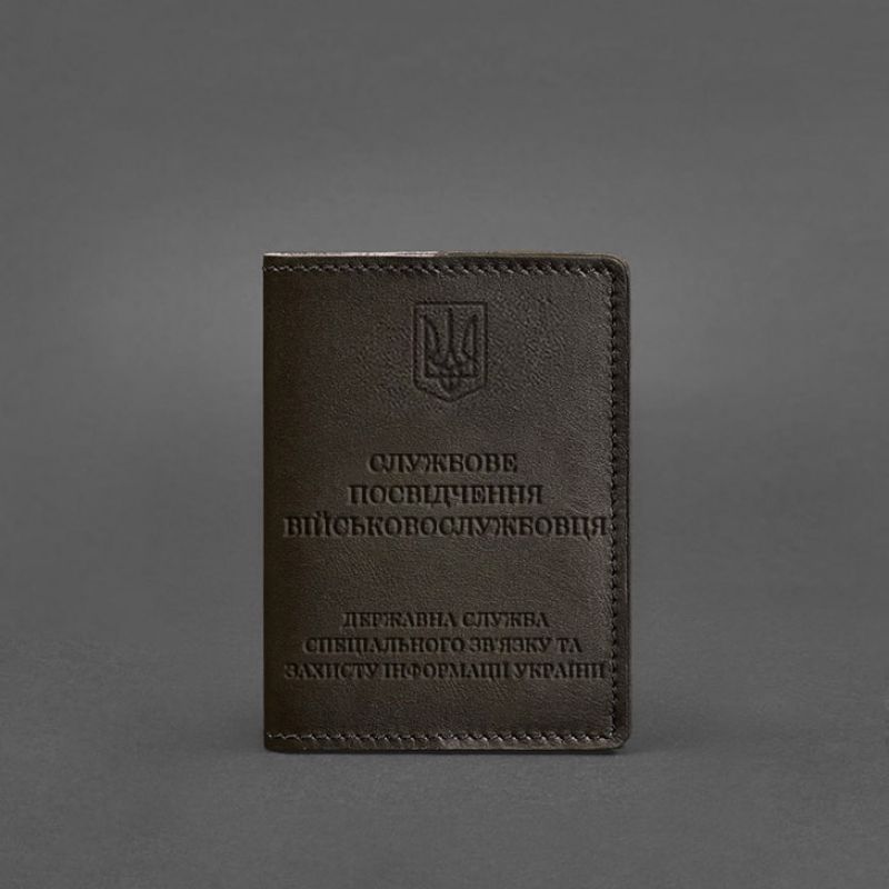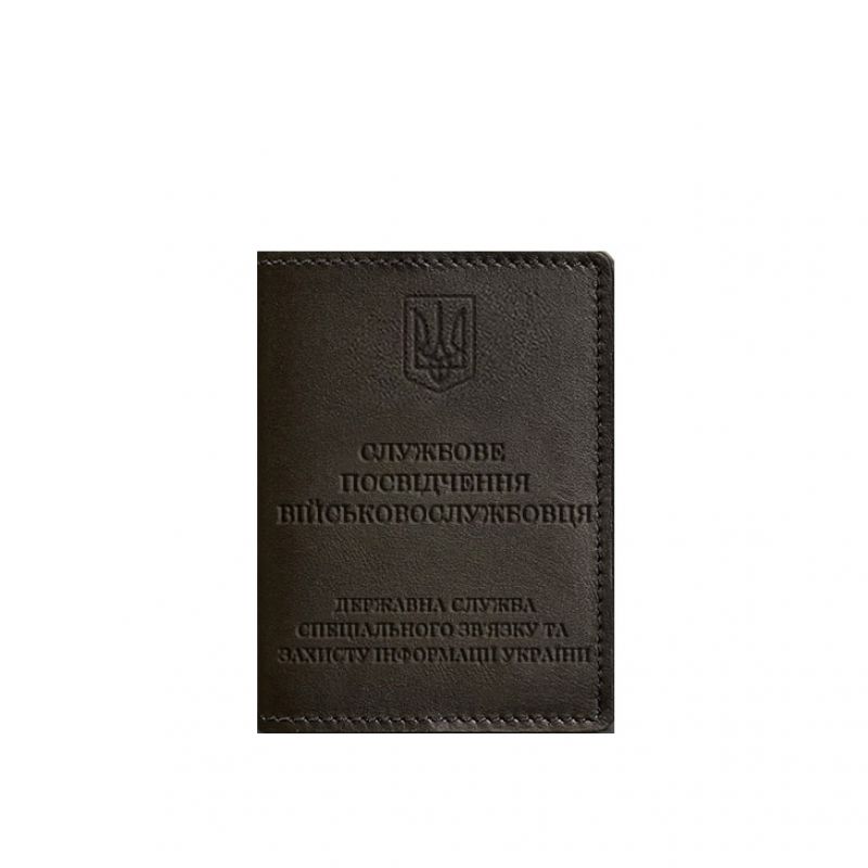 Кожаная обложка для служебного удостоверения военнослужащего Госспецсвязи темно-коричневая