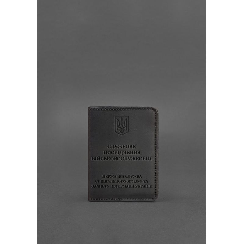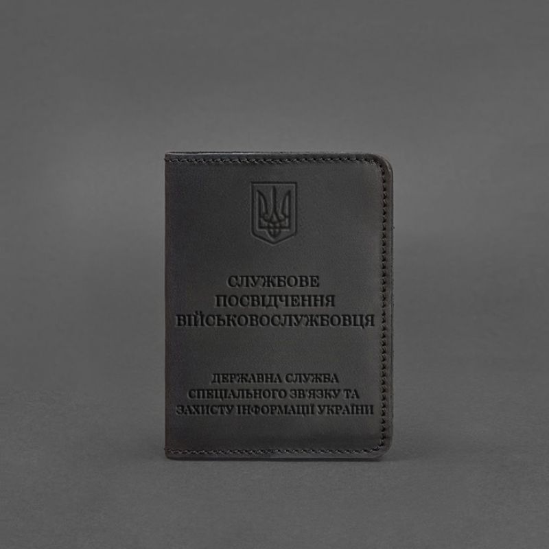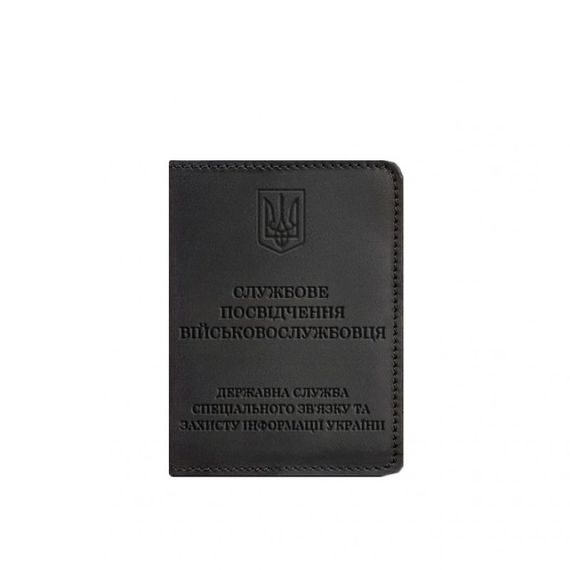 Кожаная обложка для служебного удостоверения военнослужащего Госспецсвязи черная Crazy Horse