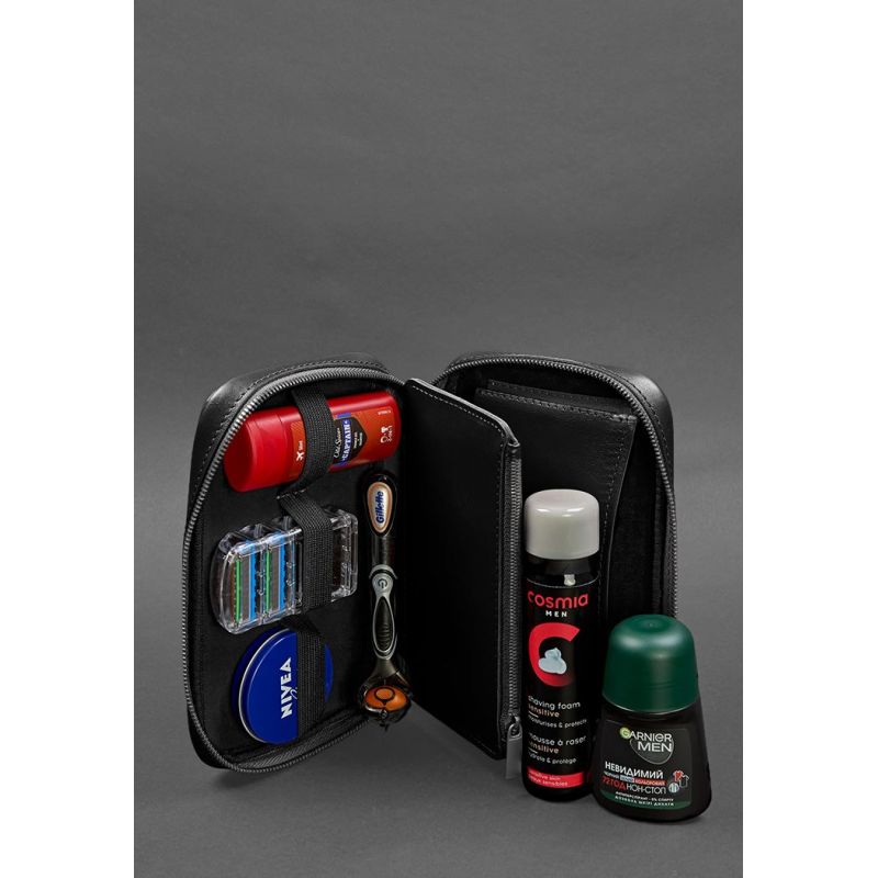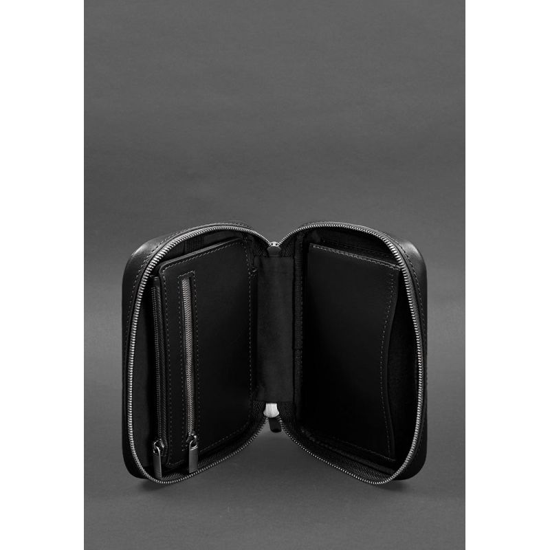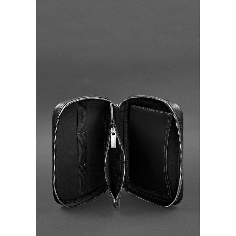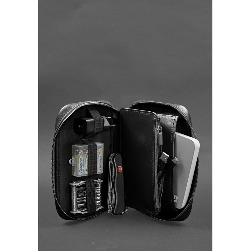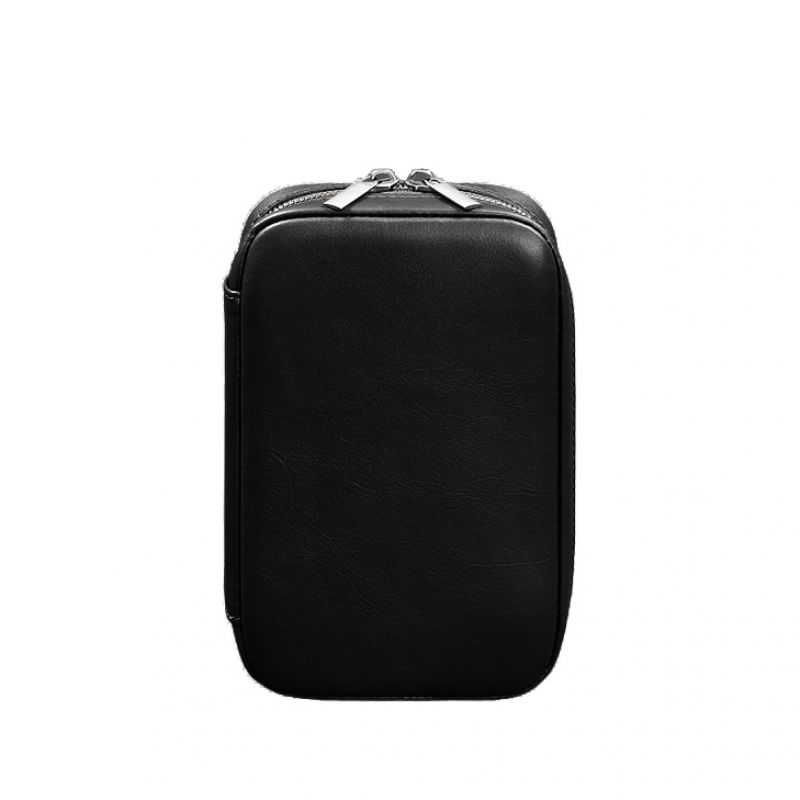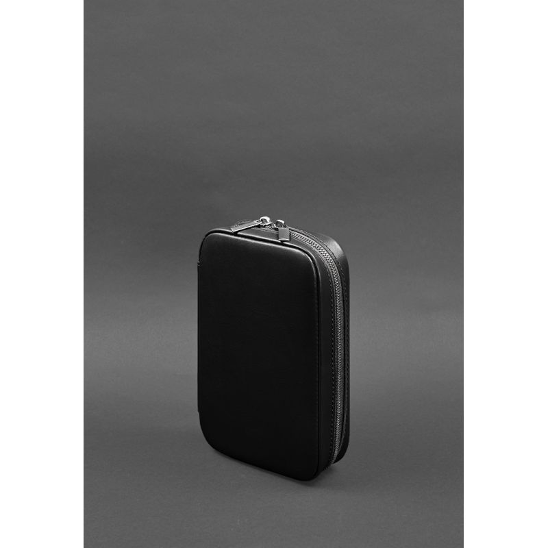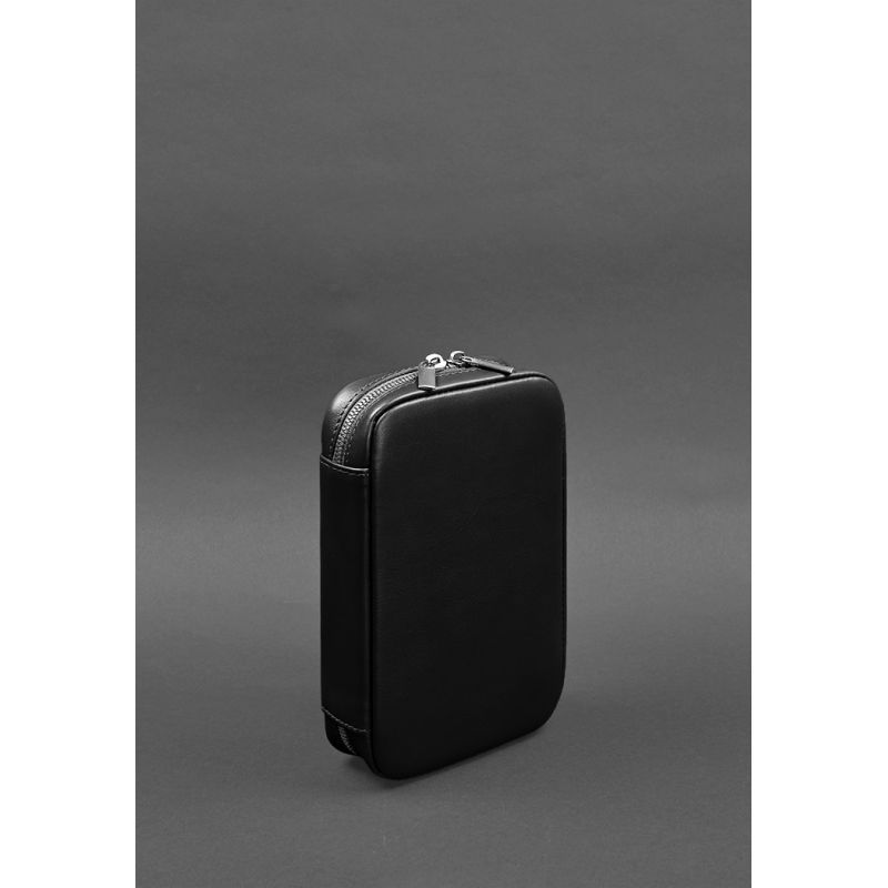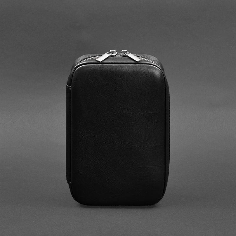 Кожаный дорожный органайзер для проводов, косметичка-несессер 7.0 черный краст