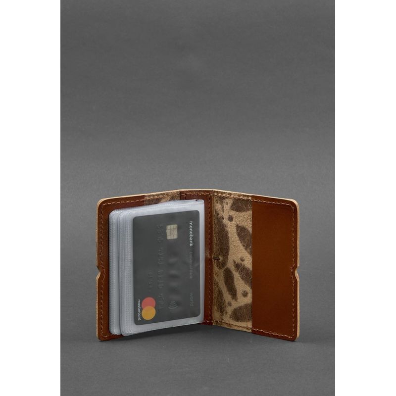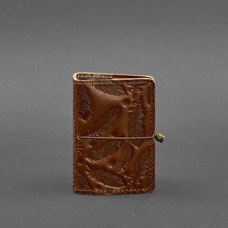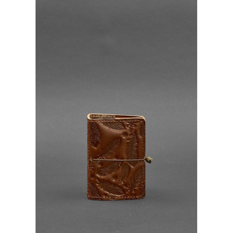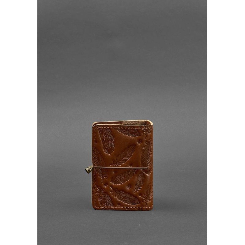 Женский кожаный кард-кейс 7.0 светло-коричневый с перьями