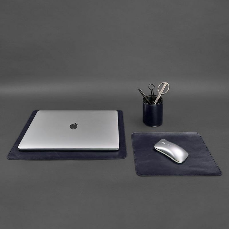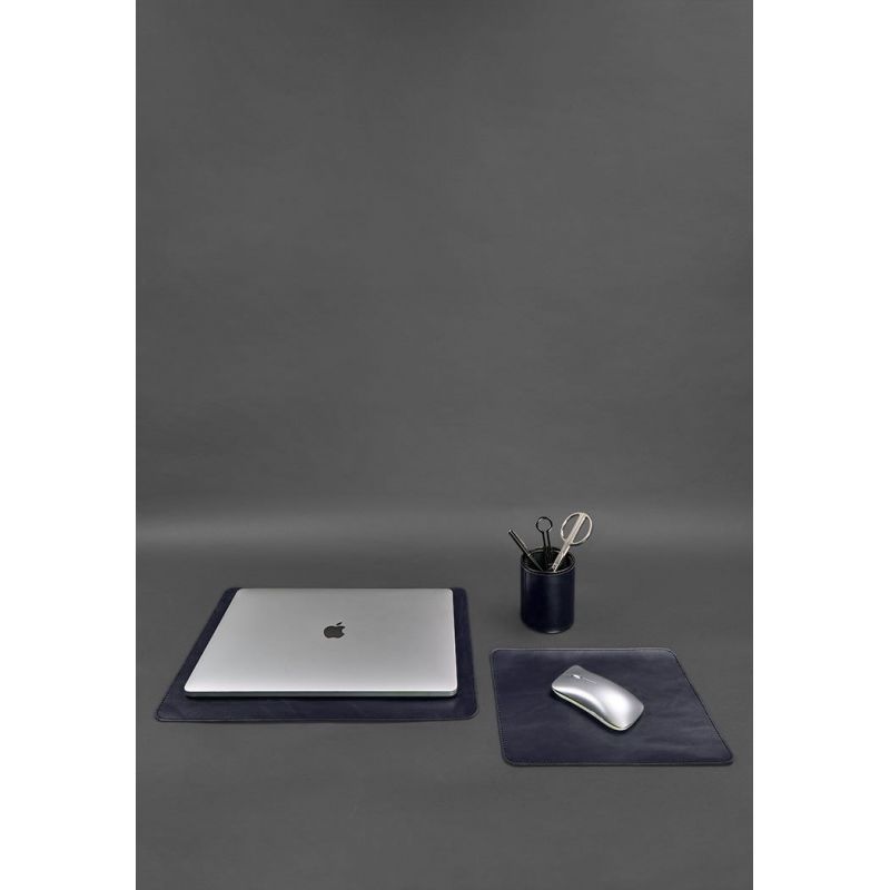 Набор для рабочего стола из натуральной кожи 1.0 темно-синий краст