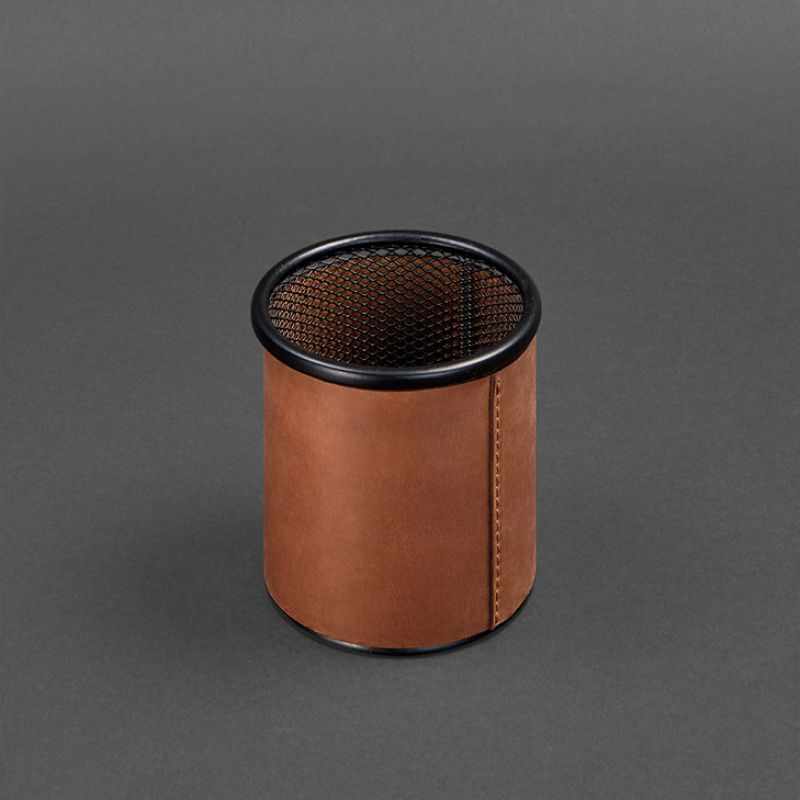 Стакан для ручек в кожаном чехле светло-коричневый Crazy Horse