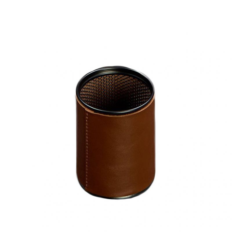 Стакан для ручек в кожаном чехле изготовлен из высококачественной натуральной кожи краст. Он предназначенный для хранения карандашей, различных ручек и других канцелярских принадлежностей.