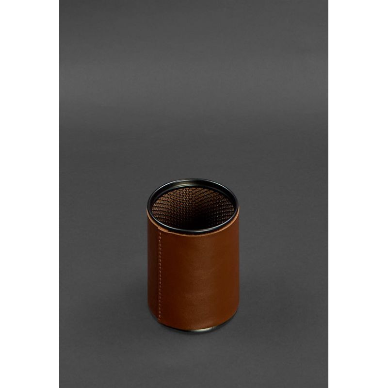 Стакан для ручек в кожаном чехле светло-коричневый краст
