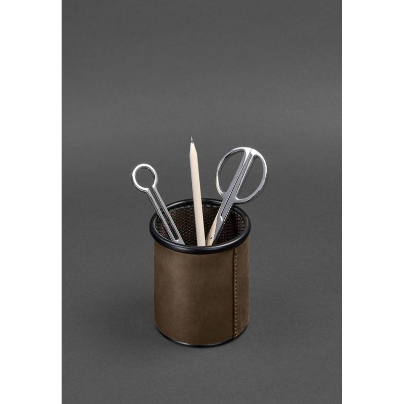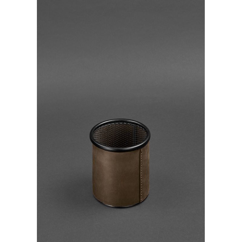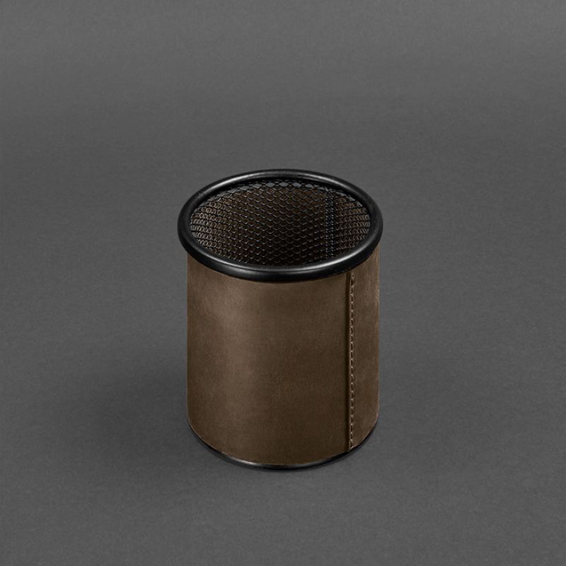Стакан для ручек в кожаном чехле темно-коричневый Crazy Horse