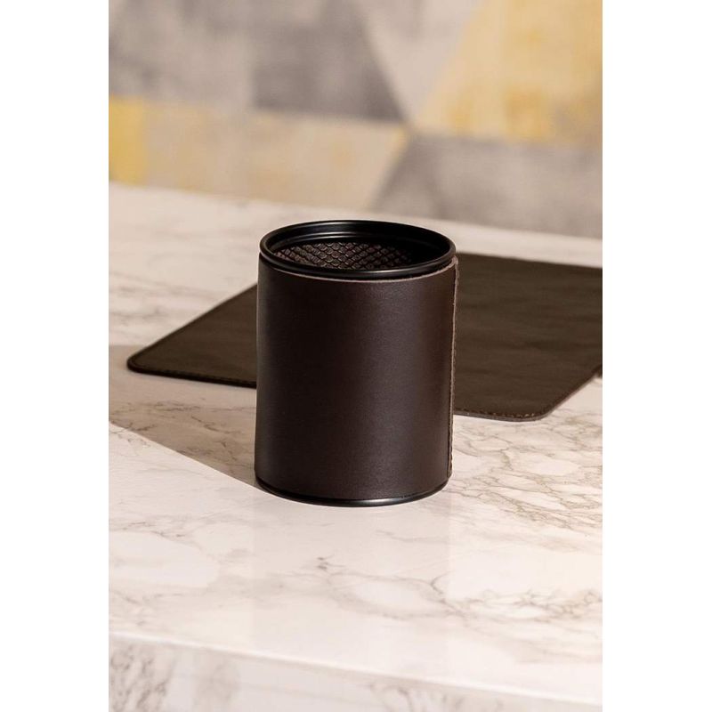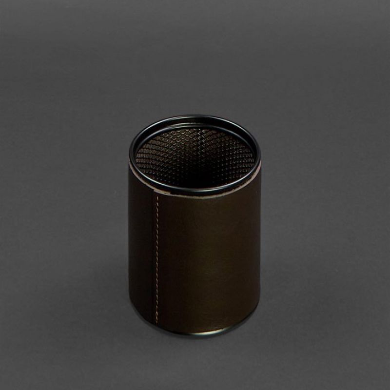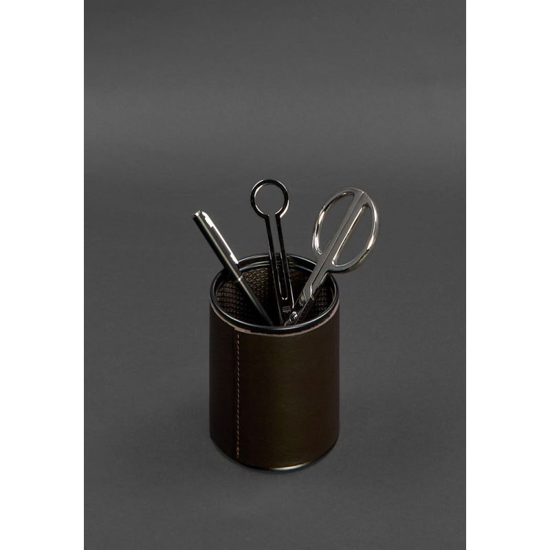 Стакан для ручек в кожаном чехле темно-коричневый краст