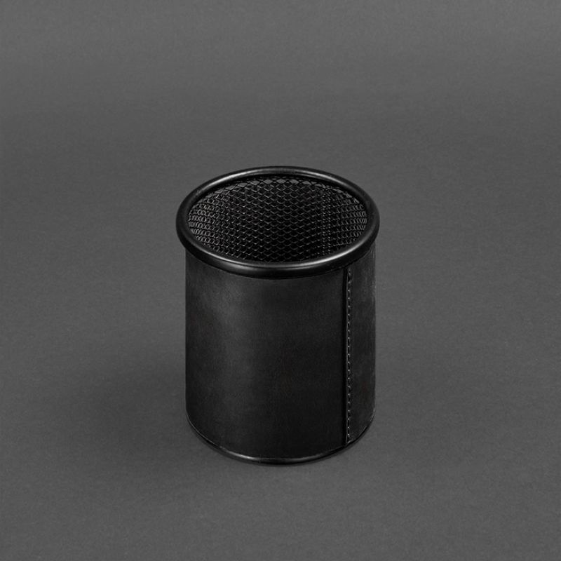 Стакан для ручек в кожаном чехле черный Crazy Horse