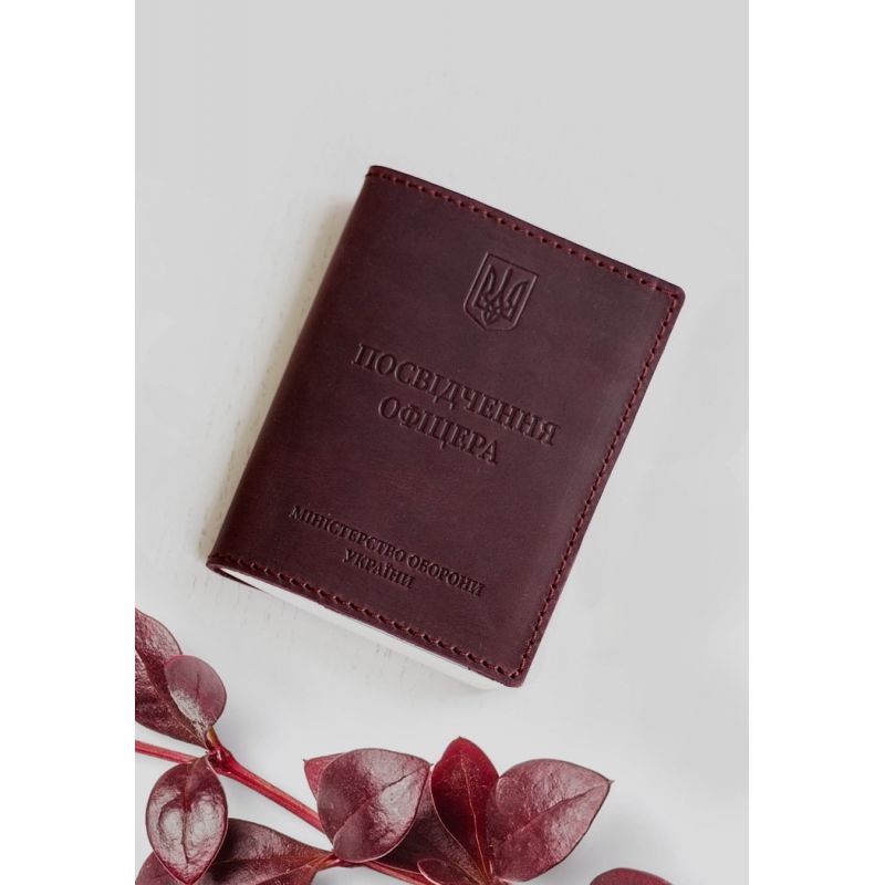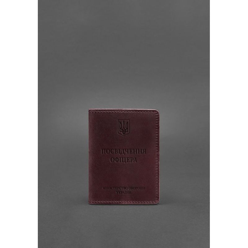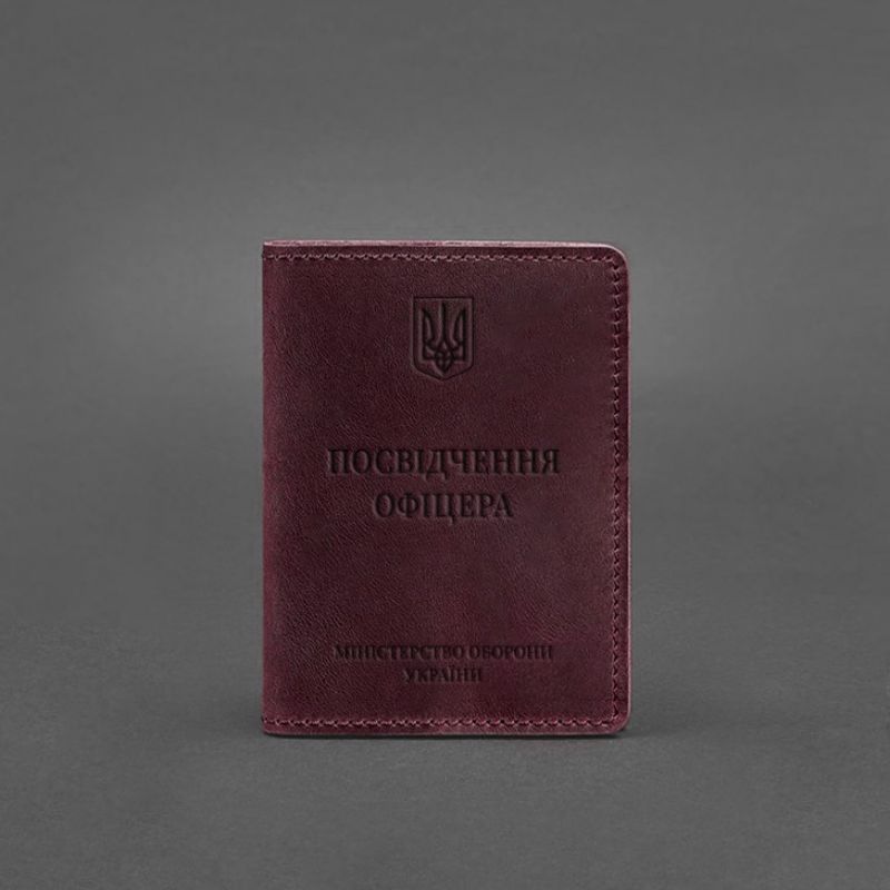 Кожаная обложка на удостоверение офицера от бренда БланкНот специально разработана для бережного хранения вашего документа. Сшита из высококачественной натуральной кожи crazy horse, с винтажной матовой поверхностью. Кожа crazy horse обладает винтажным эффектом, она достаточно крепкая и долговечная. Тиснение на лицевой стороне обложки полностью дублирует оригинальный бланк документа. Вверху расположен герб Украины, посередине находится надпись «Посвідчення офіцера» К заказу доступны два варианта обложки: С двумя прозрачными карманами (ПВХ). С двумя кожаными карманами. Этот аксессуар обеспечит сохранность вашего документа и пригодится всем военнослужащим. Почему стоит купить Бордовую кожаную обложку на удостоверение офицера (BN-OP-9-vin-kr) от BlankNote? Качественная натуральная кожа Четкое и хорошее тиснение Ручная работы Гарантия 3 года Наши мастера могут изготовить обложку в любом другом цвете. Также изделие можно персонализировать. Обратите внимание на наши изделия с украинской символикой. Рекомендуем обложки для паспорта с гербом Украины. Гарантия на обложку для паспорта - 3 года с момента покупки. ВНИМАНИЕ! Выделка данной кожи предполагает естественное появление на ней царапин и потертостей в ходе использования! От этого изделие становится более индивидуальным и приятным, это оценят настоящие поклонники винтажного стиля:)  А так же первое время кожа может краситься при сильном трении об другие предметы  - это особенность её выделки, постепенно этот эффект уменьшается,  кожа полируется и приобретает чуть глянцевый эффект. Фурнитура и комплектация может быть изменена производителем