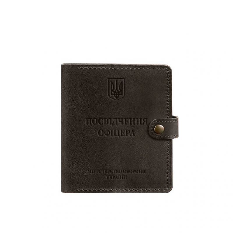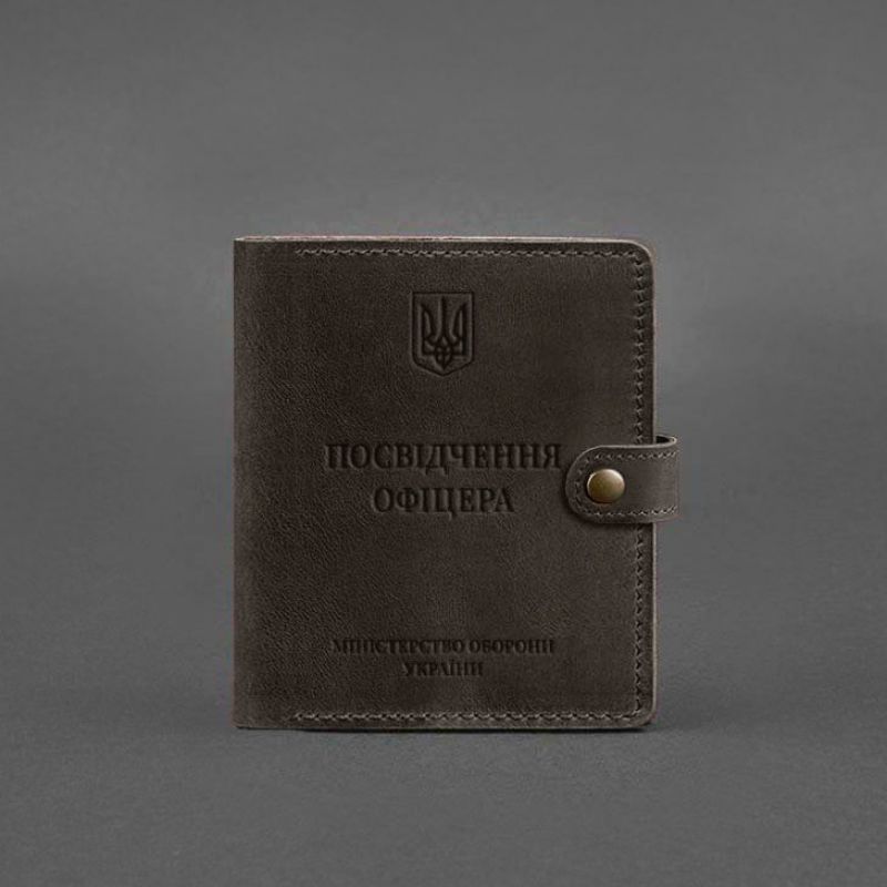 Кожаная обложка-портмоне на удостоверение офицера от бренда БланкНот специально разработана для бережного хранения вашего документа. Сшита из высококачественной натуральной кожи crazy horse, с винтажной матовой поверхностью. Кожа crazy horse обладает винтажным эффектом, она достаточно крепкая и долговечная. Тиснение на лицевой стороне обложки полностью дублирует оригинальный бланк документа. Вверху расположен герб Украины, посередине находится надпись «Посвідчення офіцера» и в нижней части имеется тиснение «Міністерство оборони України» Внутри имеется 1 отделение для купюр, 3 слота для пластиковых карт, прозрачный карман и отделение для документа. Закрывается портмоне-обложка хлястиком с кнопкой.   Почему стоит купить Темно-коричневую кожаную обложку-портмоне на удостоверение офицера (BN-OP-11-o) от BlankNote? Качественная натуральная кожа Четкое и хорошее тиснение Ручная работы Гарантия 3 года Наши мастера могут изготовить обложку-портмон е в любом другом цвете. Также изделие можно персонализировать. Обратите внимание на наши изделия с украинской символикой. Рекомендуем обложки для паспорта с гербом Украины. Гарантия на обложку-портмоне - 3 года с момента покупки. ВНИМАНИЕ! Выделка данной кожи предполагает естественное появление на ней царапин и потертостей в ходе использования! От этого изделие становится более индивидуальным и приятным, это оценят настоящие поклонники винтажного стиля:)  А так же первое время кожа может краситься при сильном трении об другие предметы  - это особенность её выделки, постепенно этот эффект уменьшается,  кожа полируется и приобретает чуть глянцевый эффект. Фурнитура и комплектация может быть изменена производителем