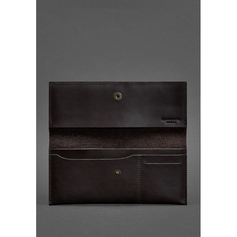 Внутри имеется несколько отделений для документов и денег, также есть небольшие кармашки, в которых можно расположить пластиковые карты и визитки. Закрывается холдер на кнопку.