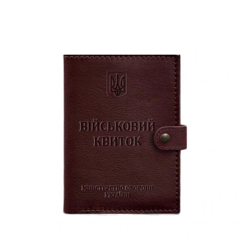 Кожаная обложка-портмоне для военного билета 15.0 бордовая