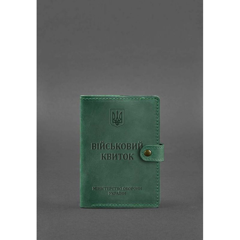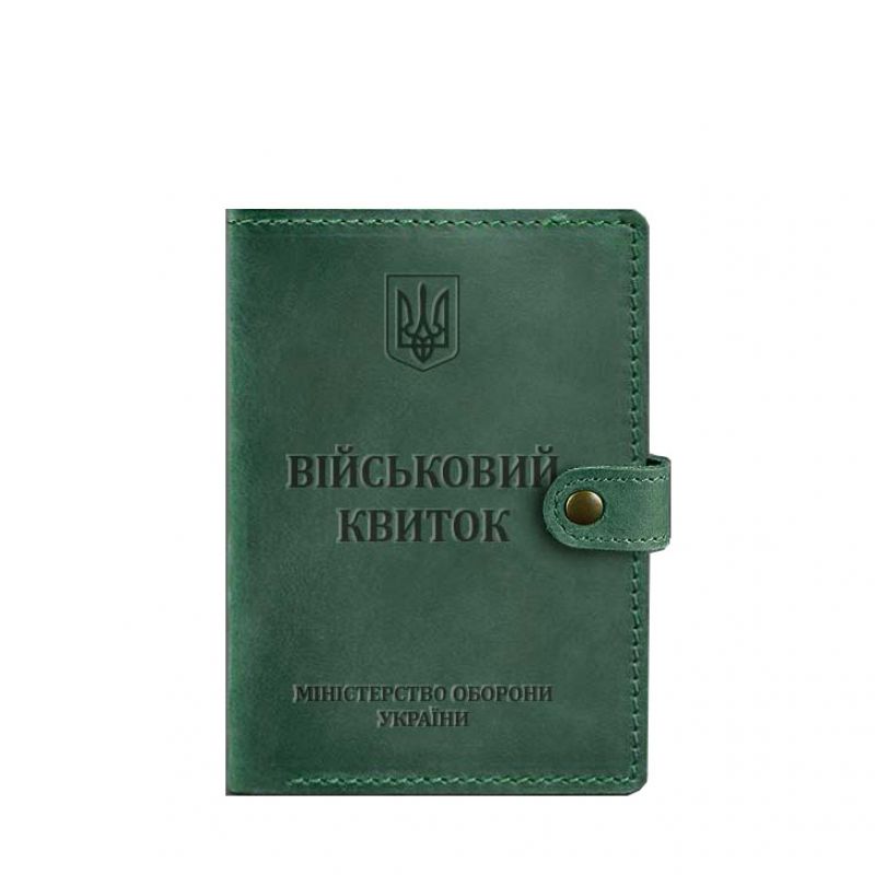 Кожаная обложка-портмоне для военного билета 15.0 зеленая Crazy Horse
