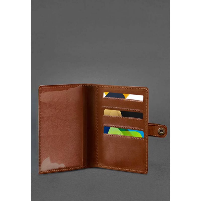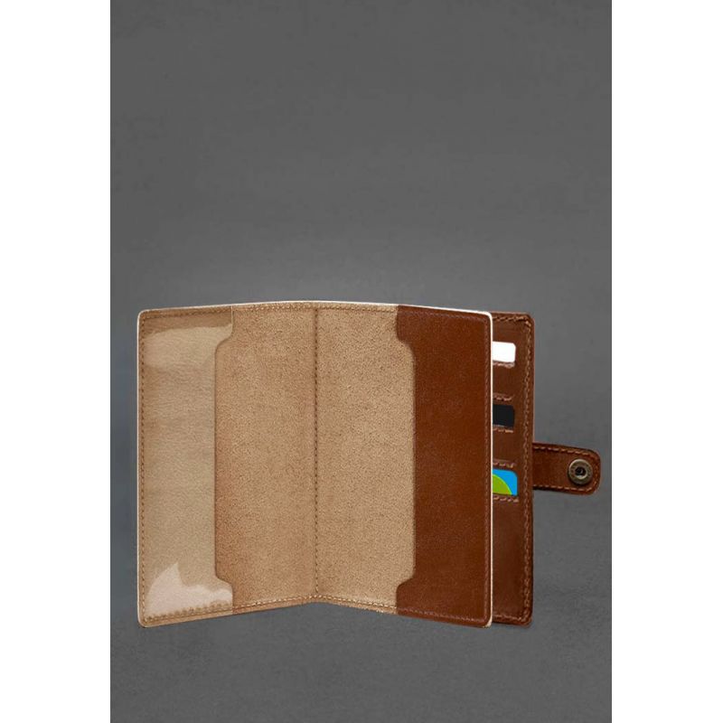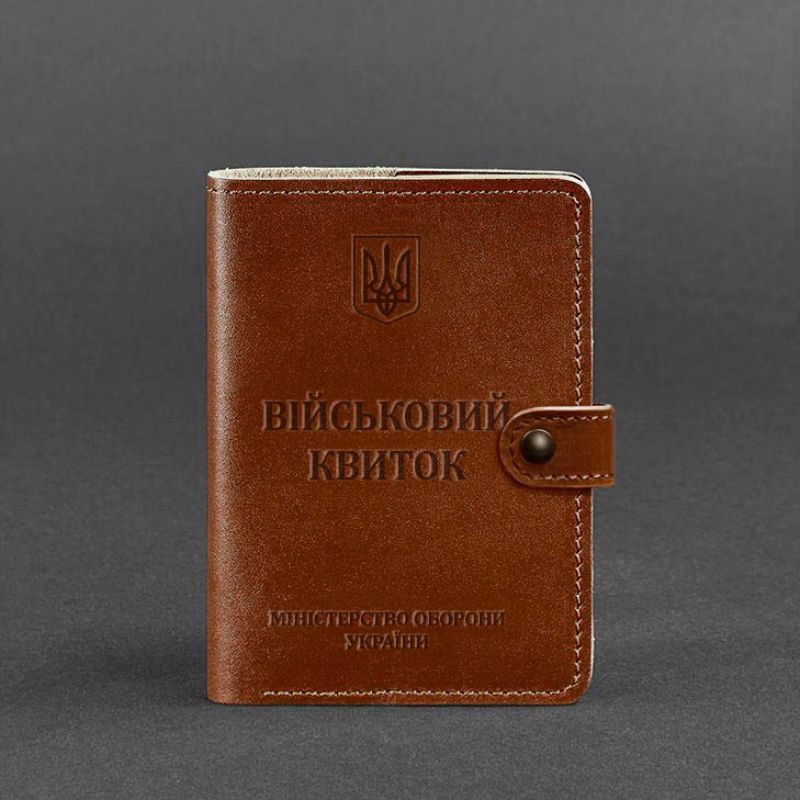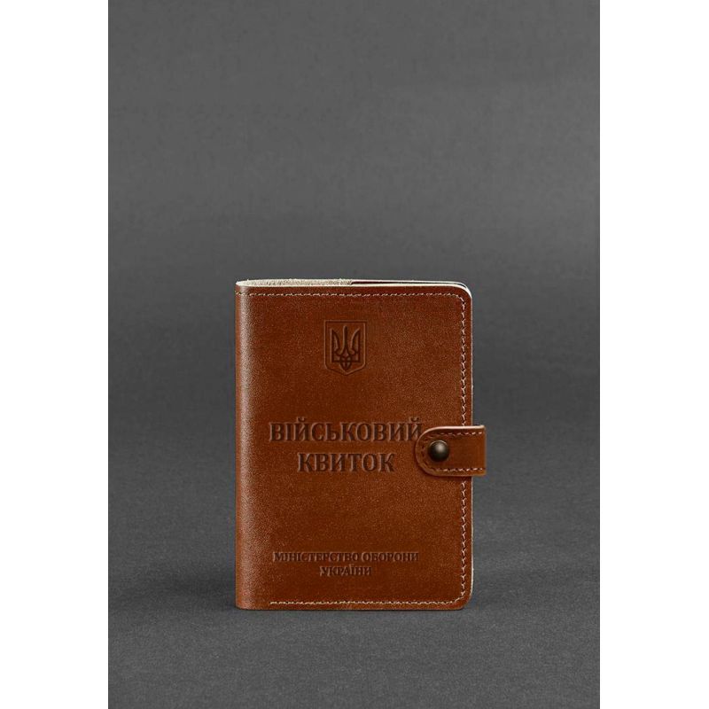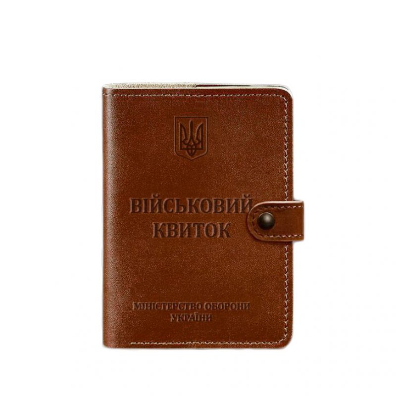 Кожаная обложка-портмоне для военного билета 15.0 светло-коричневая