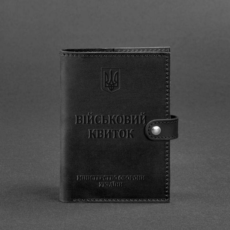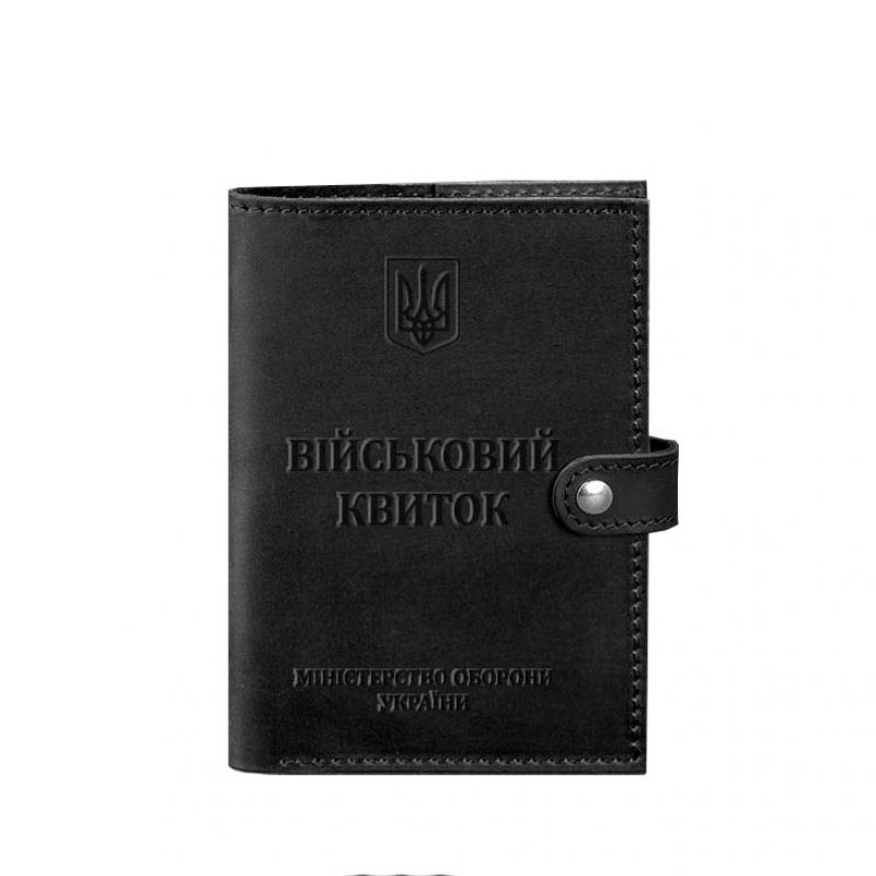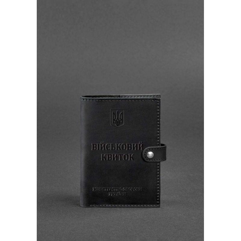 Кожаная обложка-портмоне для военного билета офицера запаса от бренда БланкНот специально разработана для бережного хранения вашего документа. Сшита из высококачественной натуральной кожи crazy horse, с винтажной матовой поверхностью. Кожа crazy horse обладает винтажным эффектом, она достаточно крепкая и долговечная. Тиснение на лицевой стороне обложки полностью дублирует оригинальный бланк документа. Вверху расположен герб Украины, посередине находится надпись "Військовий квиток" и в нижней части имеется тиснение "Міністерство оборони України" и в нижней части имеется тиснение "Міністерство оборони України" Внутри имеется 1 отделение для купюр, 5 слотов для пластиковых карт, отделение с прозрачным карманом и отделение для документа. Закрывается портмоне-обложка хлястиком с кнопкой.   Почему стоит купить Черную кожаную обложку-портмоне для военного билета офицера запаса (BN-OP-15-g-kr) от BlankNote? Качественная натуральная кожа Четкое и хорошее тиснение Ручная работы Гарантия 3 года Наши мастера могут изготовить обложку-портмонев любом другом цвете. Также изделие можно персонализировать. Обратите внимание на наши изделия с украинской символикой. Рекомендуем обложки для паспорта с гербом Украины. Гарантия на обложку-портмоне - 3 года с момента покупки. ВНИМАНИЕ! Выделка данной кожи предполагает естественное появление на ней царапин и потертостей в ходе использования! От этого изделие становится более индивидуальным и приятным, это оценят настоящие поклонники винтажного стиля:)  А так же первое время кожа может краситься при сильном трении об другие предметы  - это особенность её выделки, постепенно этот эффект уменьшается,  кожа полируется и приобретает чуть глянцевый эффект. Фурнитура и комплектация может быть изменена производителем