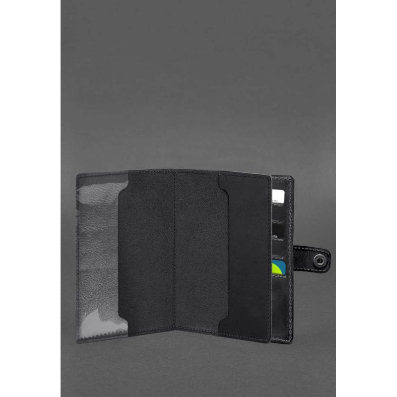 Кожаная обложка-портмоне для военного билета 15.0 черная Crazy Horse