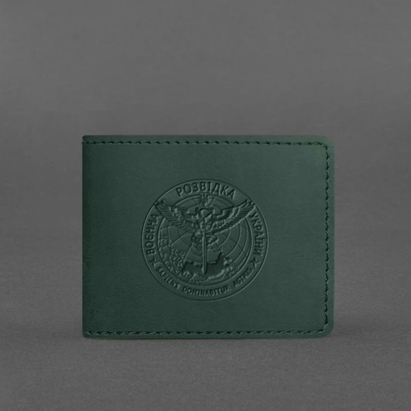 Кожаная обложка на удостоверение Главного управления разведки (ГУР) зеленая Crazy Horse