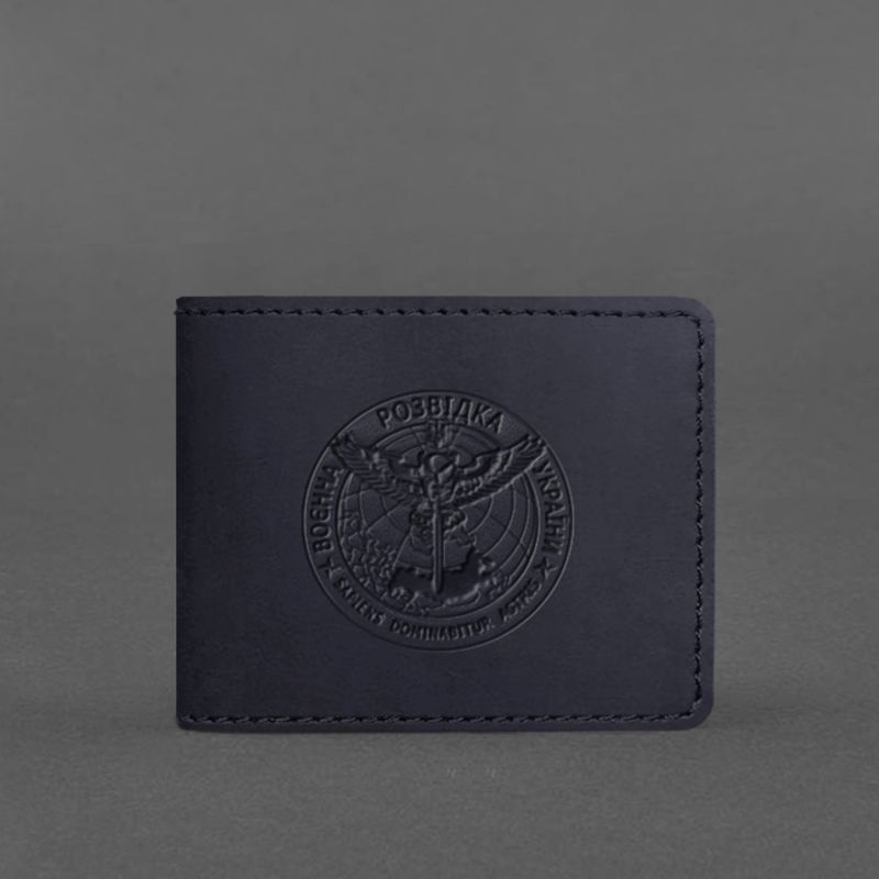 Кожаная обложка на удостоверение Главного управления разведки (ГУР) темно-синяя Crazy Horse