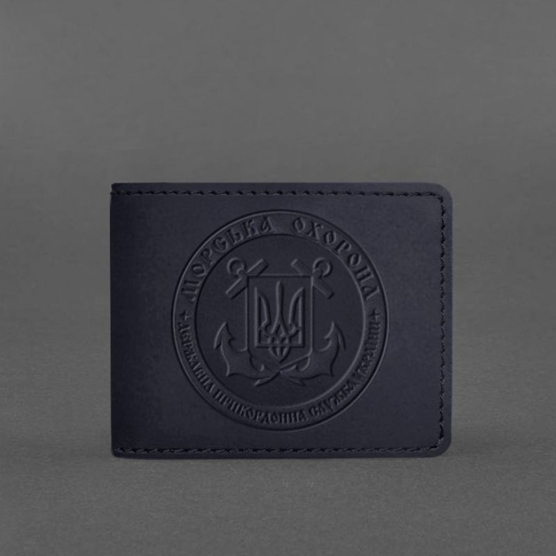 Кожаная обложка на удостоверение Морской охраны темно-синяя Crazy Horse