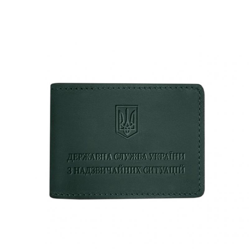 Кожаная обложка на удостоверение Государственной службы Украины по чрезвычайным ситуациям ДСНС) зеленая Crazy Horse