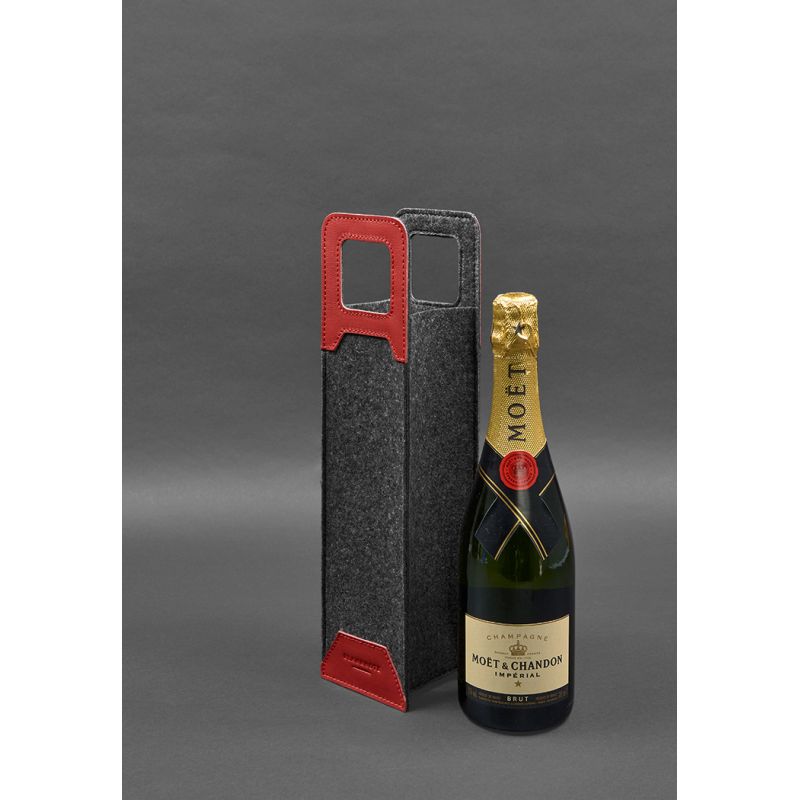 Чехол для вина 1.0 из фетра с кожаными вставками красный Краст