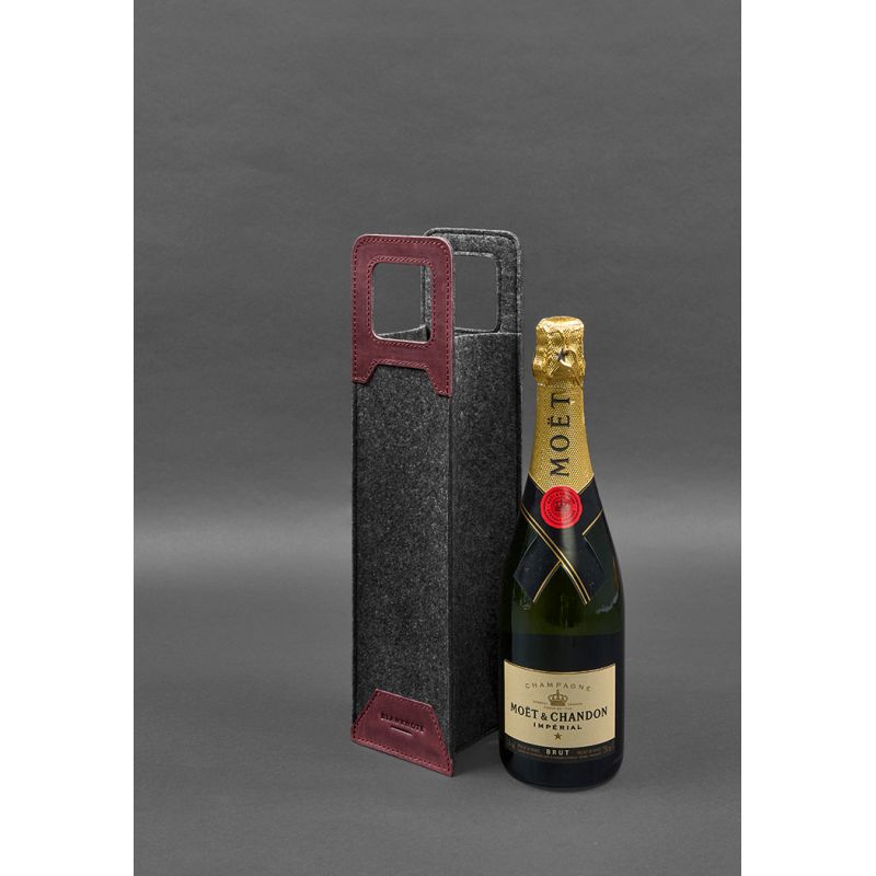 Чехол для вина 1.0 из фетра с кожаными вставками бордовый Crazy Horse