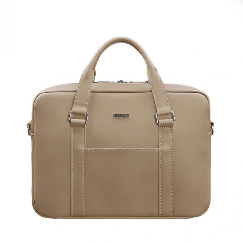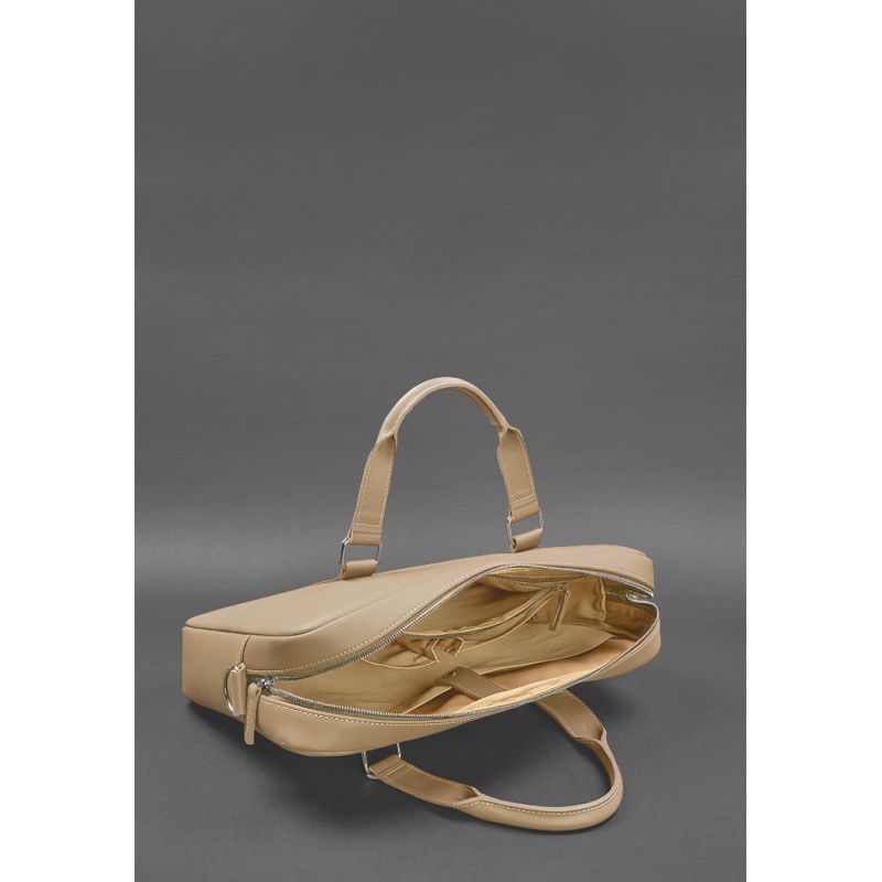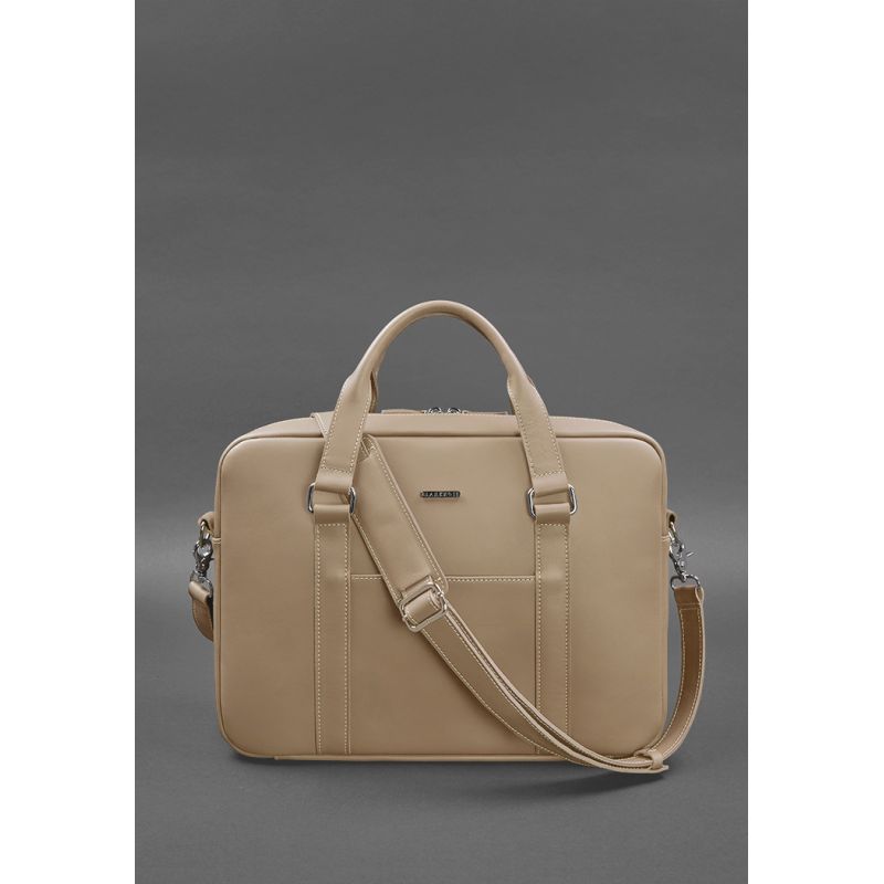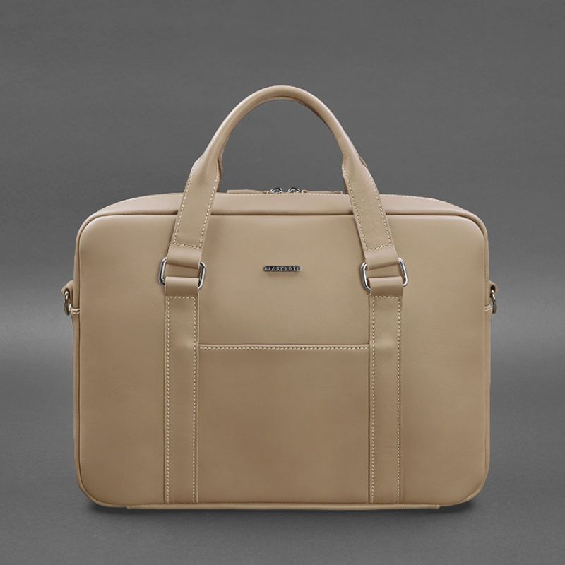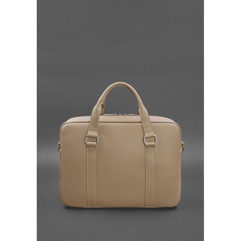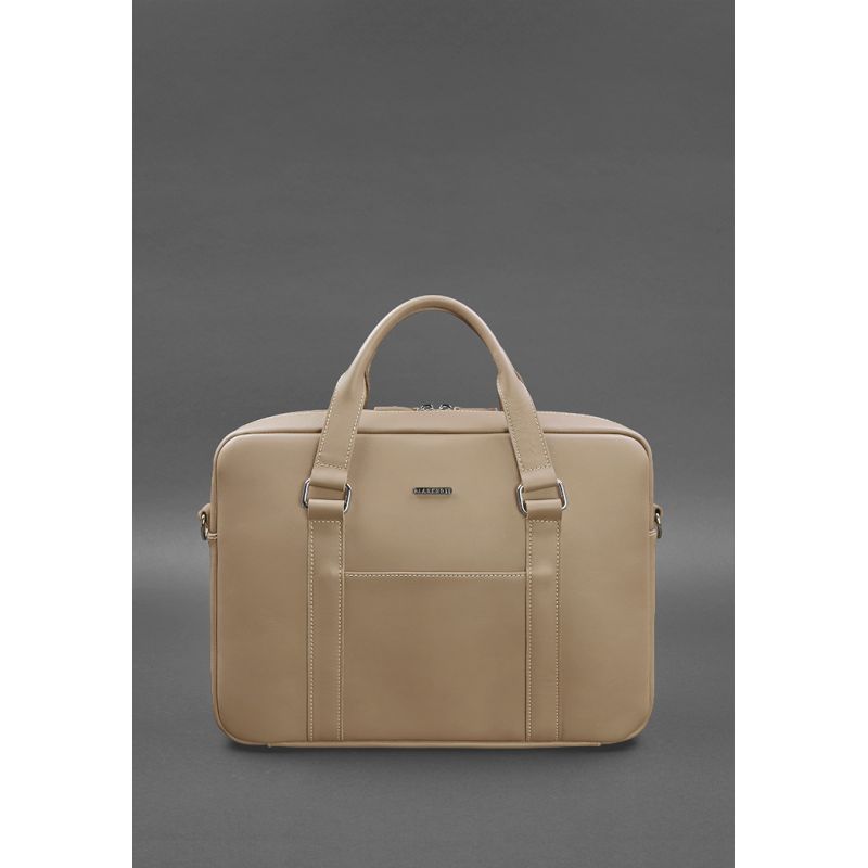 Кожаная сумка для ноутбука и документов светло-бежевая