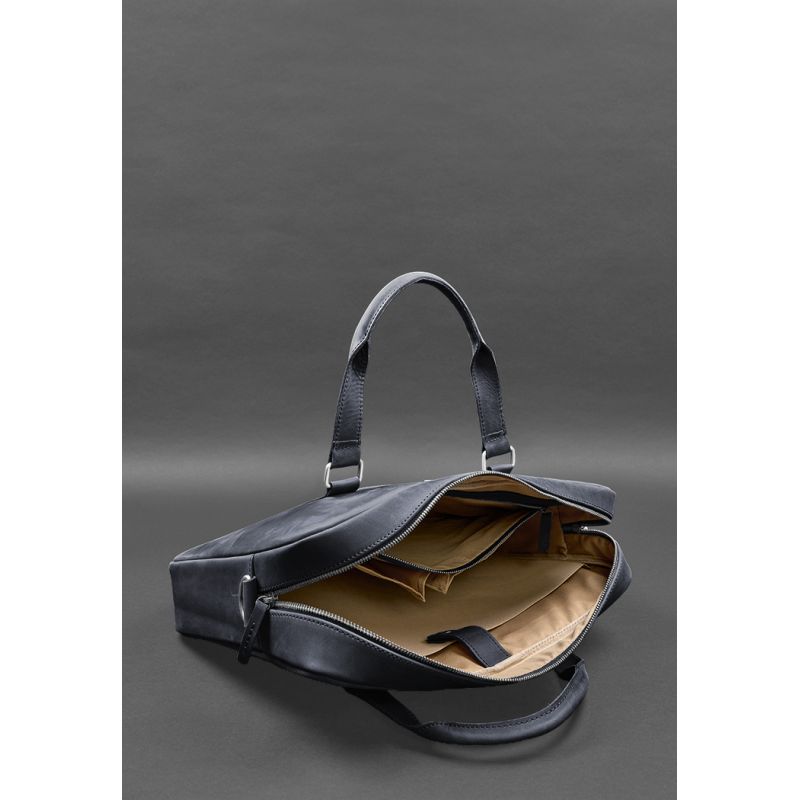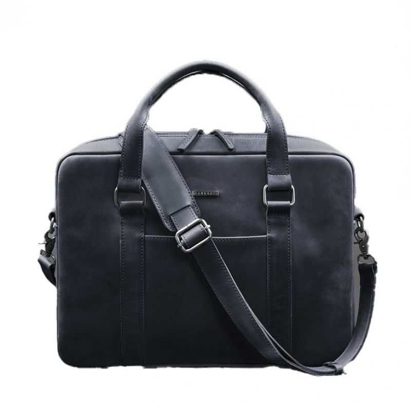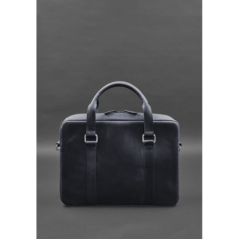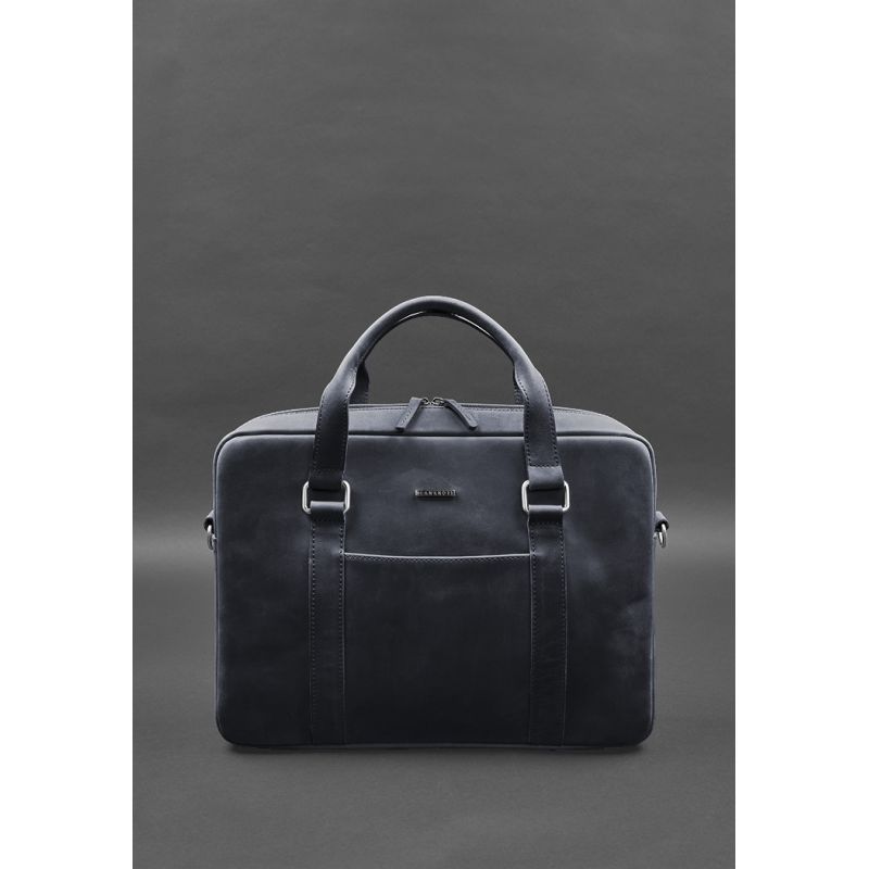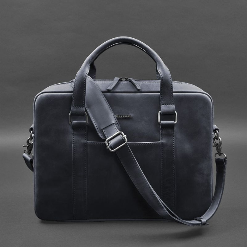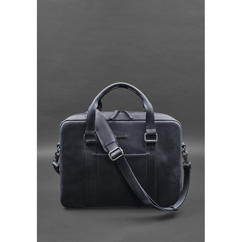Кожаная сумка для ноутбука и документов синяя Crazy Horse