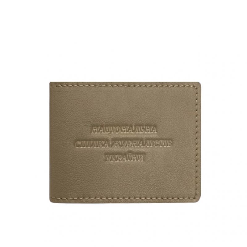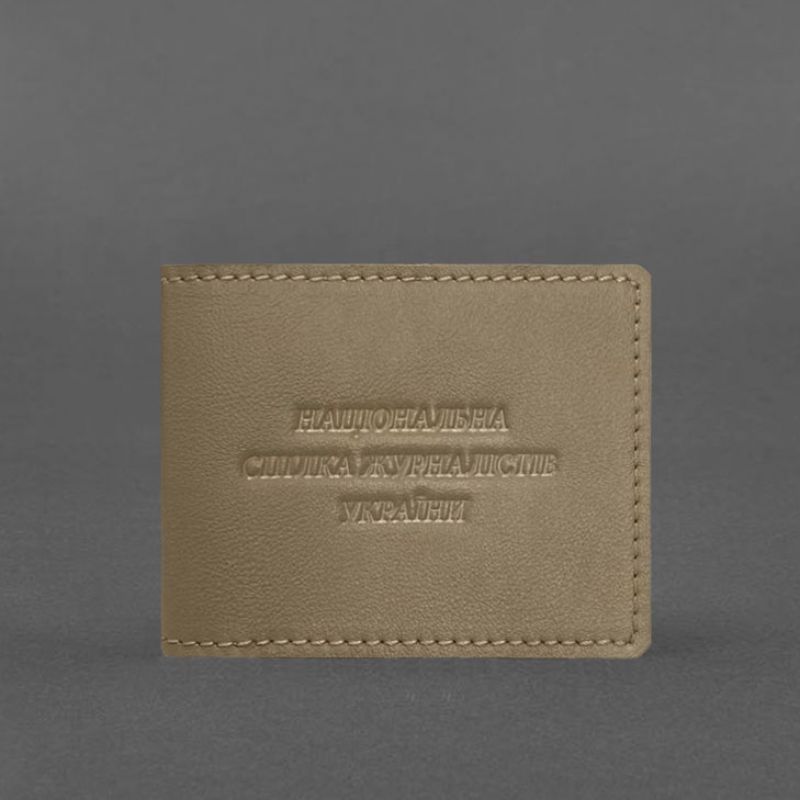 Кожаная обложка для удостоверения журналиста светло-бежевая