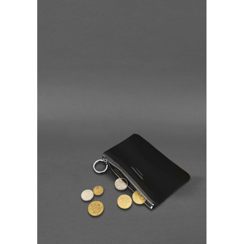 Кожаная монетница / мини-косметичка 3.0 черная краст