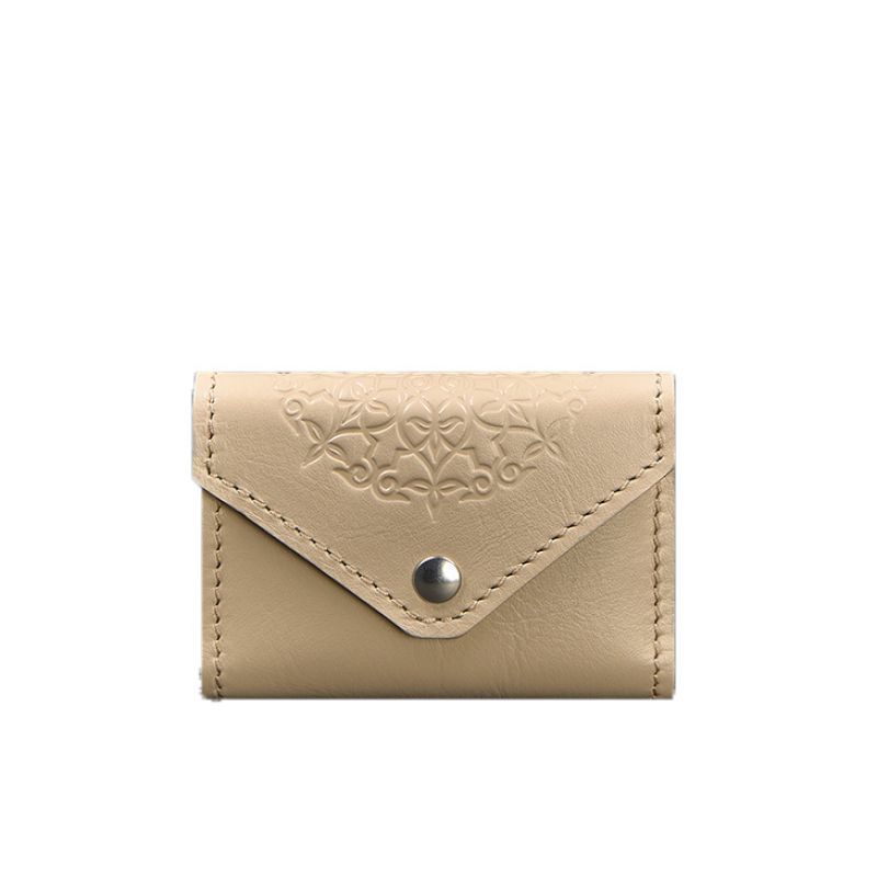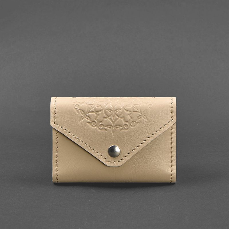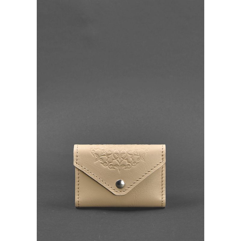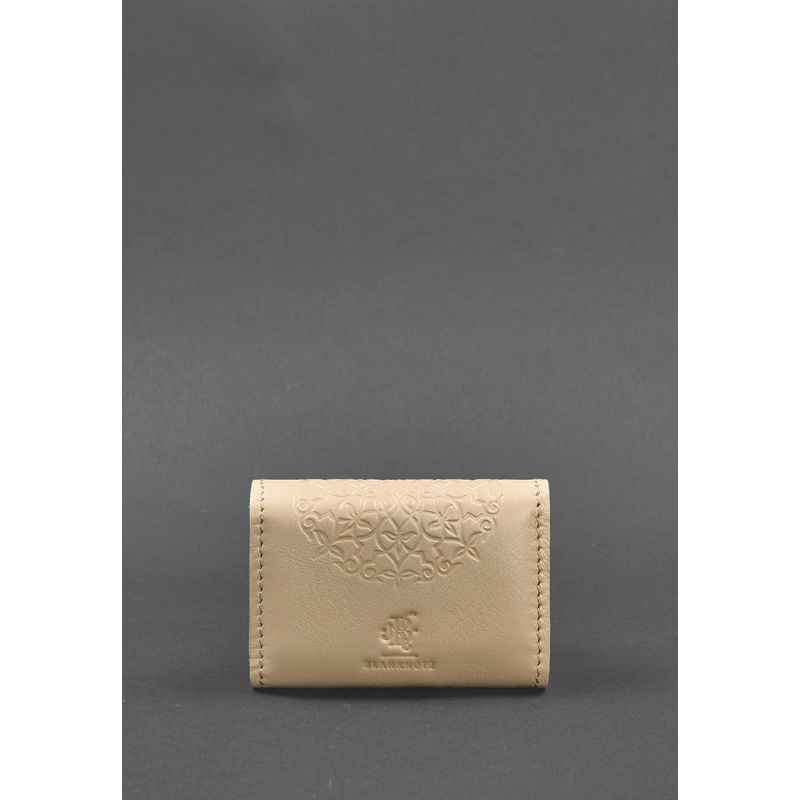 Женский кожаный кард-кейс 3.0 (Гармошка) светло-бежевый с мандалой