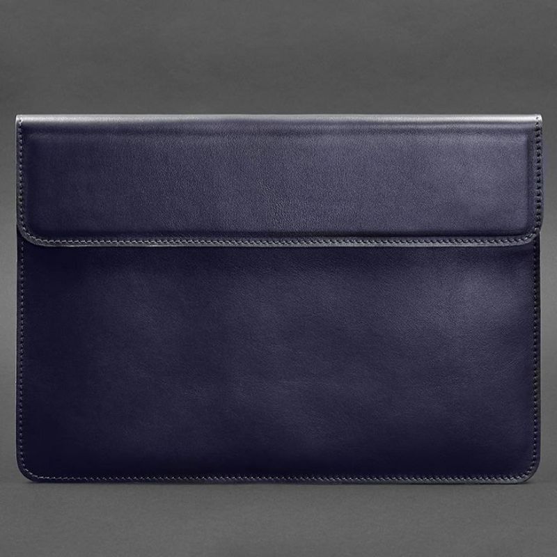 Кожаный чехол-конверт на магнитах для ноутбука Универсальный Темно-синий