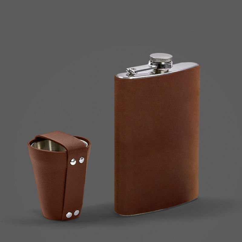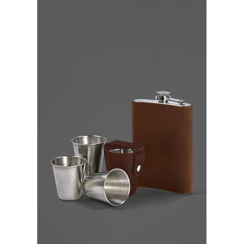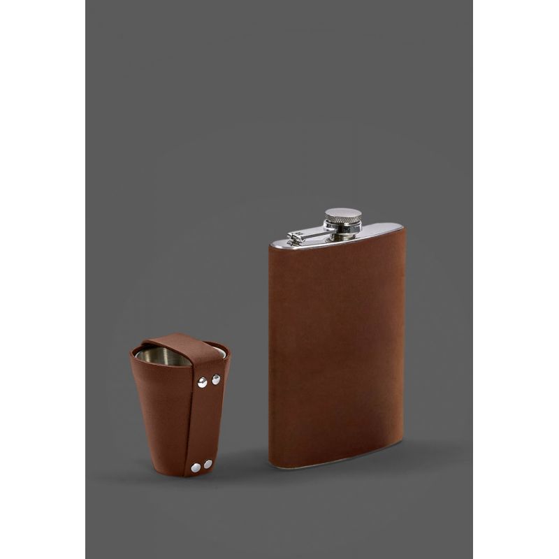 Набор с флягой и рюмками в кожаном чехле светло-коричневый Crazy Horse