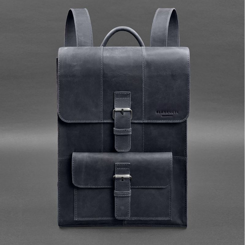 Кожаный рюкзак Brit темно-синий Crazy Horse