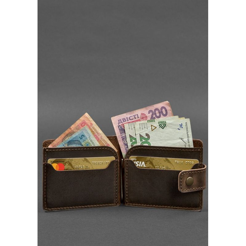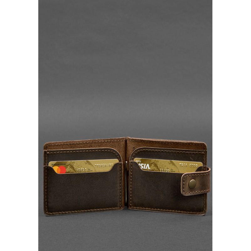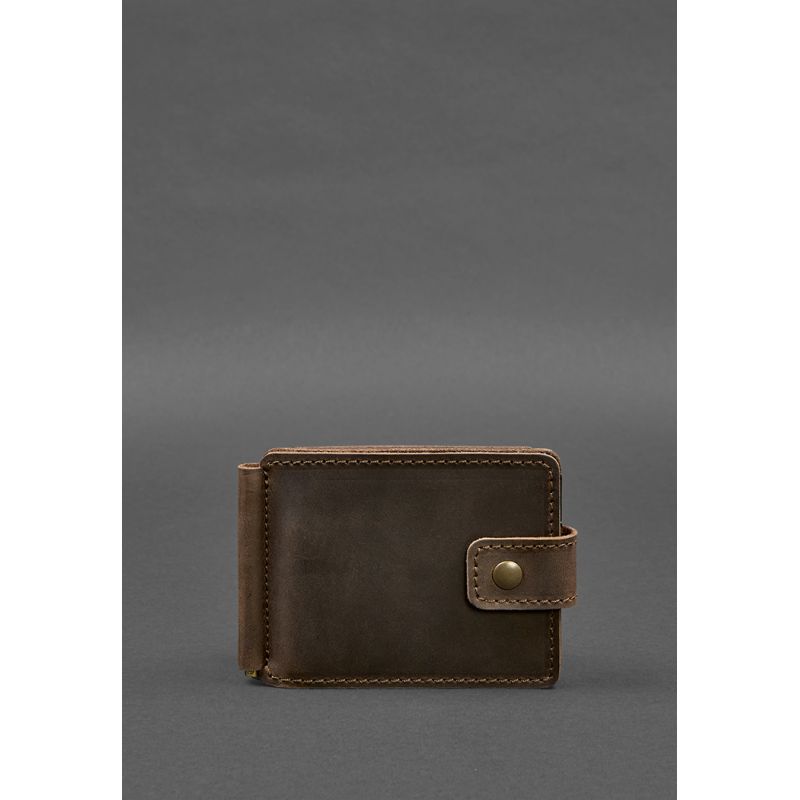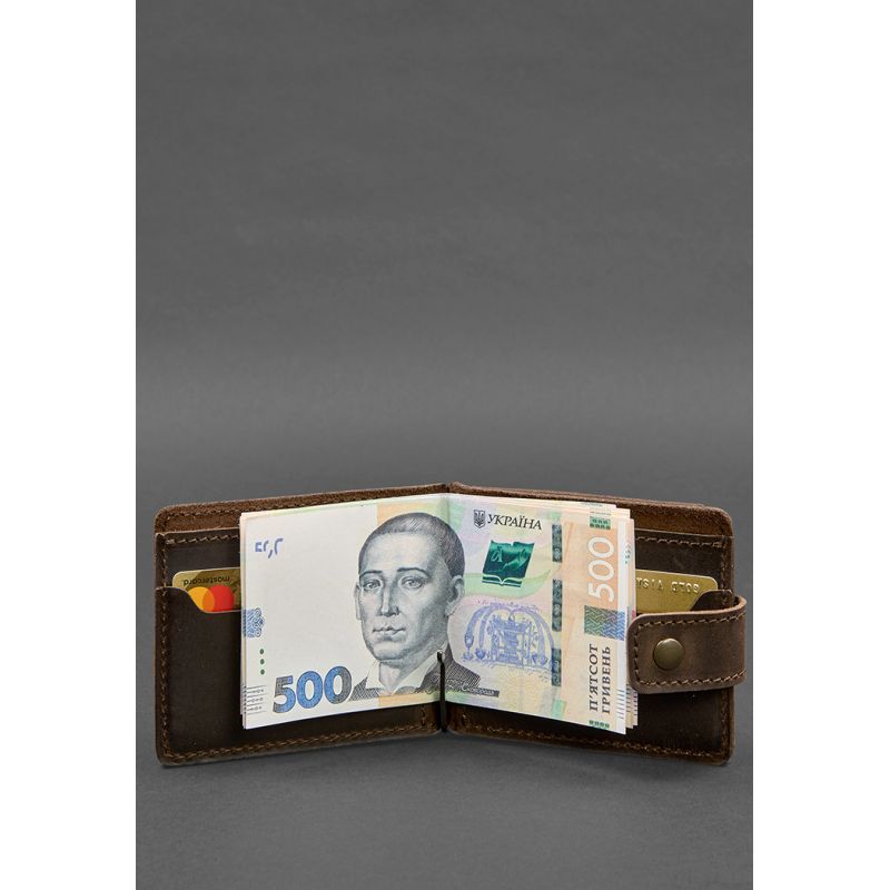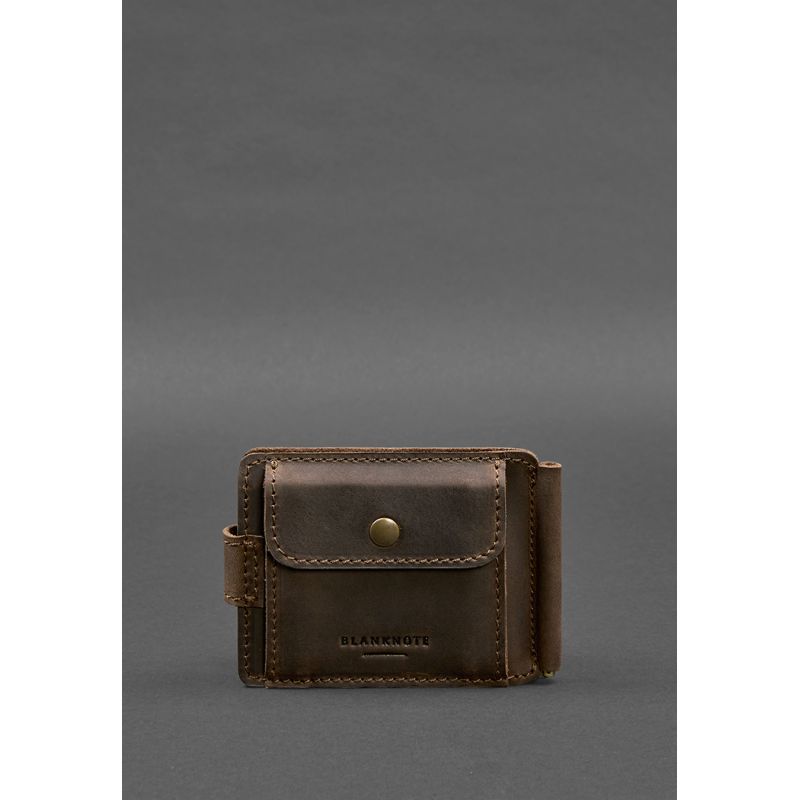 Кожаное портмоне 13.1 зажим с хлястиком темно-коричневое Crazy Horse