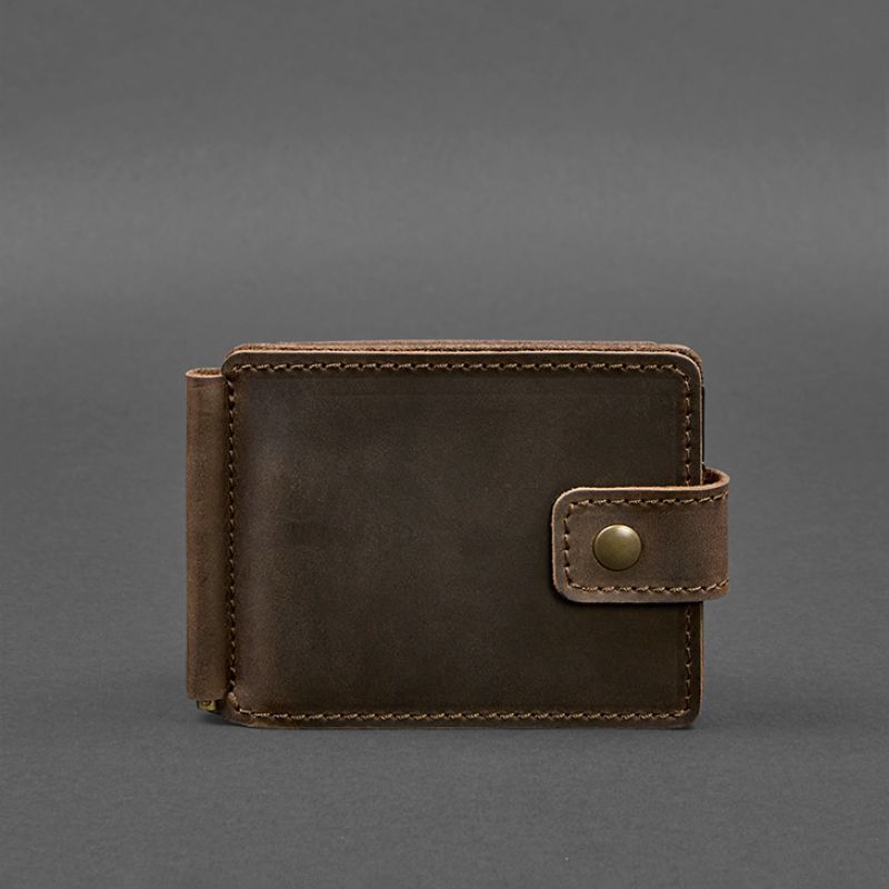 Кожаное портмоне 13.1 зажим с хлястиком темно-коричневое Crazy Horse идеально подходит для хранения ваших денежных средств. Портмоне имеет два слота для карт внутри. Карманы легко вмещают вашу кредитную карту, водительское удостоверение или любую другую карту, которую вы хотите носить с собой.