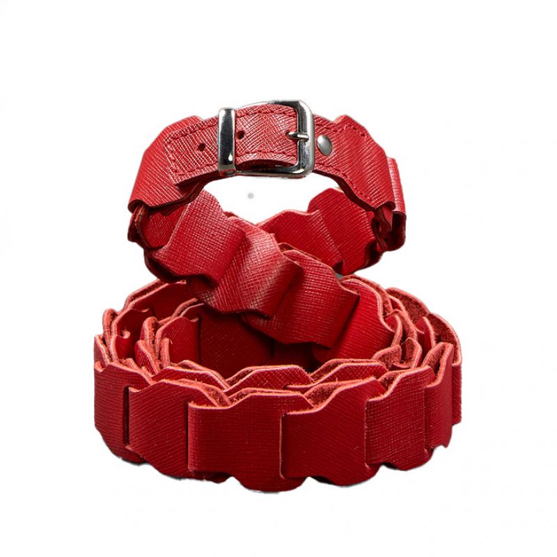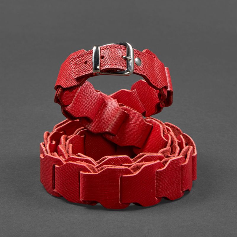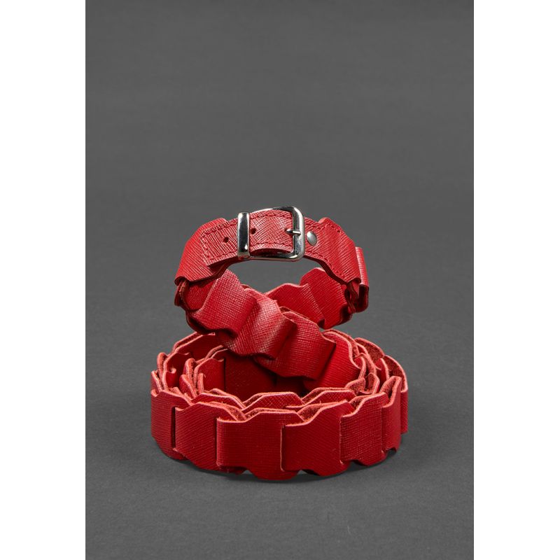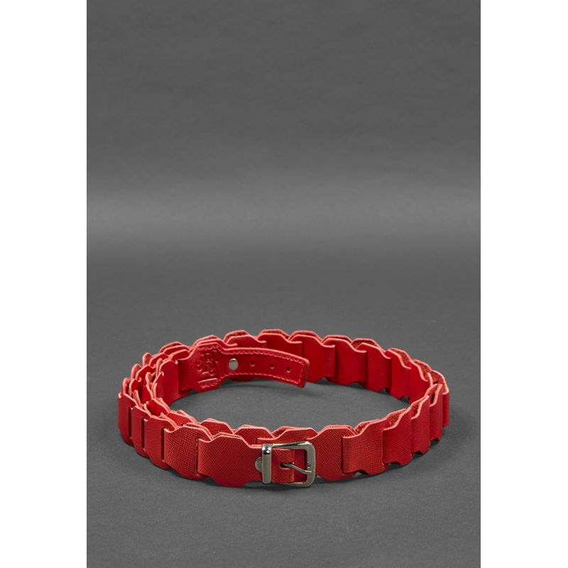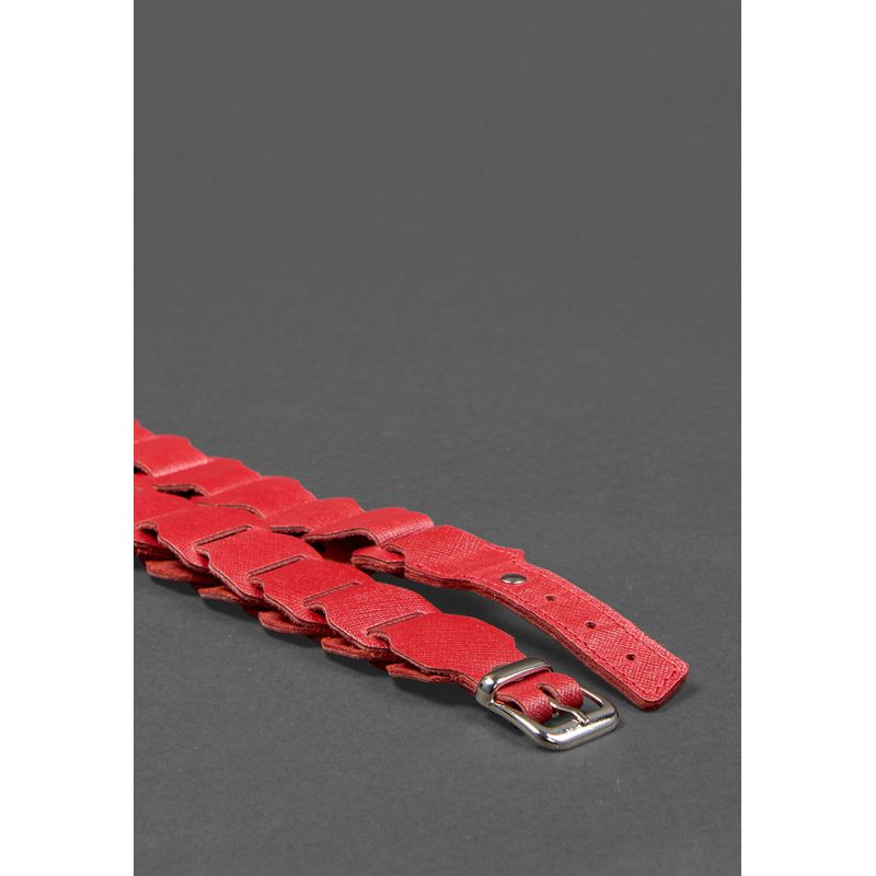 Женский кожаный бохо-ремень красный Saffiano