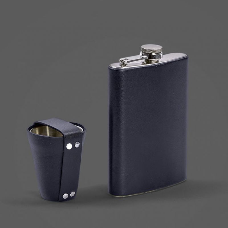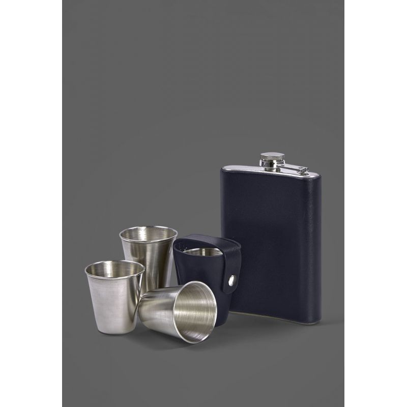 Набор с флягой и рюмками в кожаном чехле темно-синий