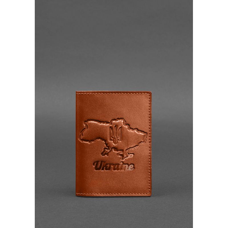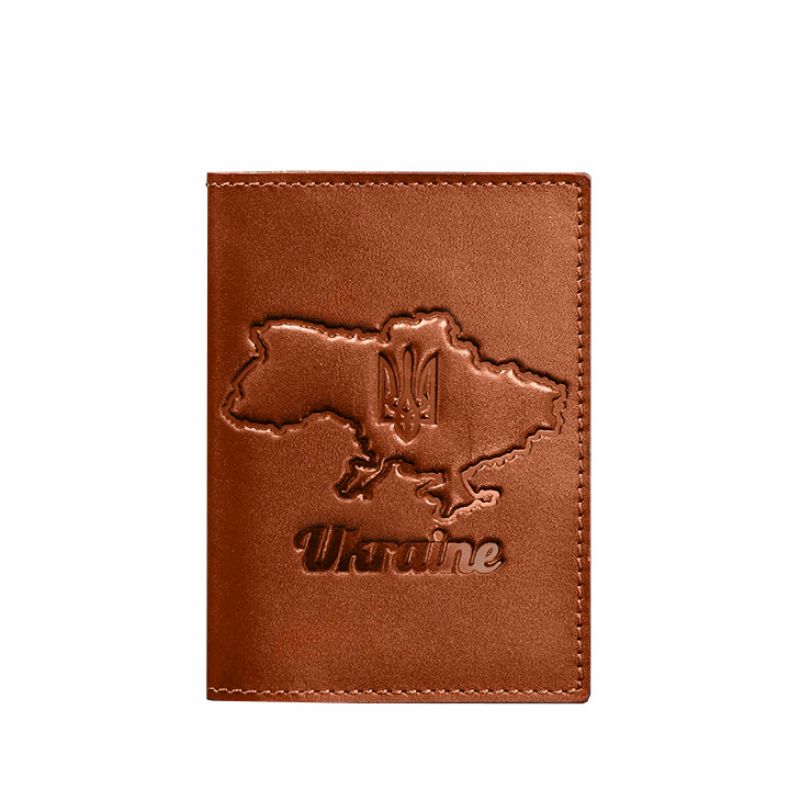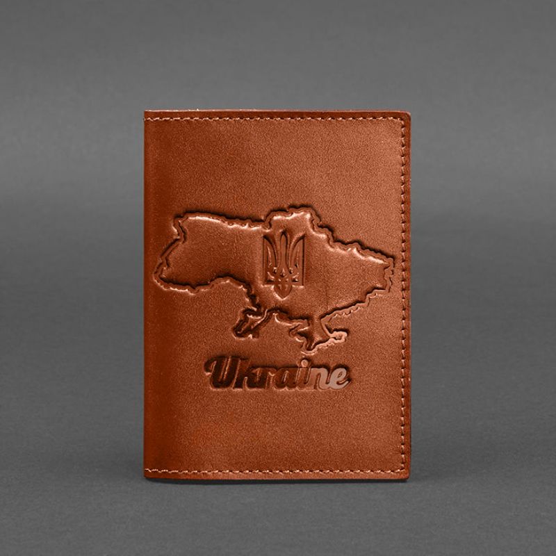 Кожаная обложка для паспорта с картой Украины светло-коричневый краст