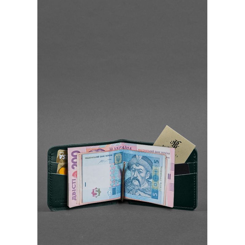 Кожаное портмоне 4.4 (с зажимом) зеленый краст