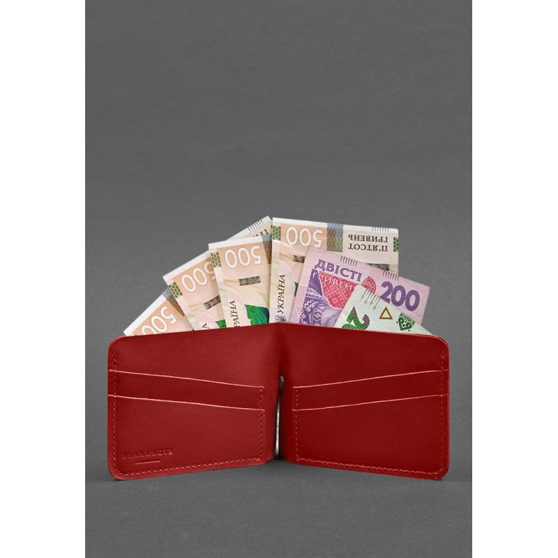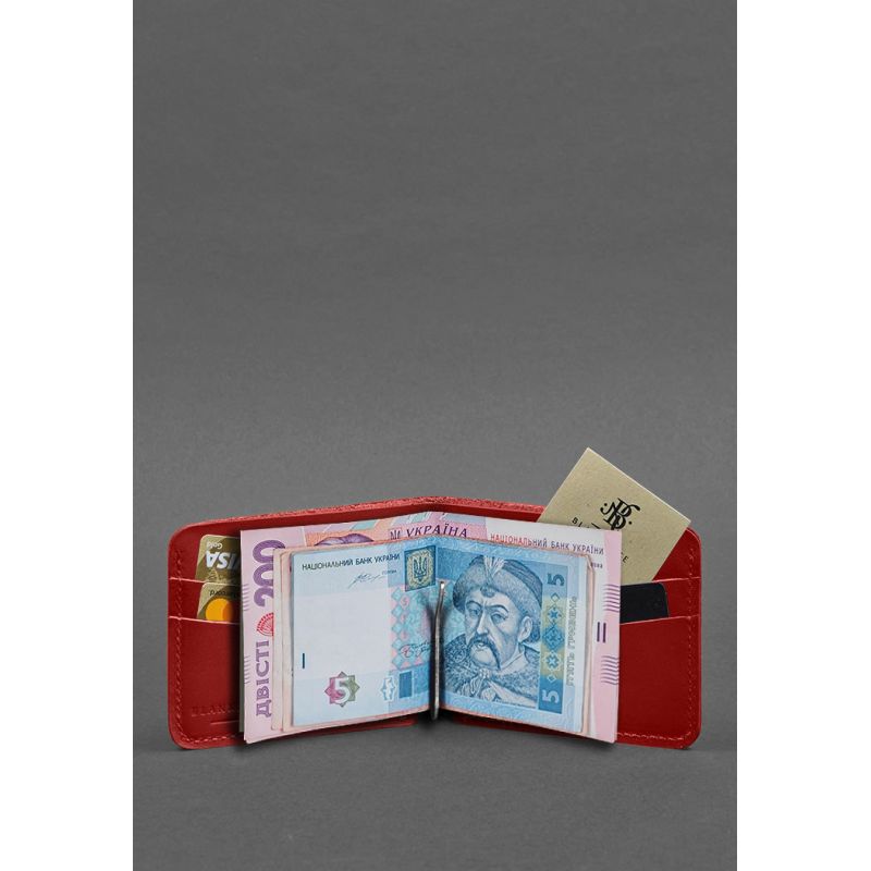 Кожаное портмоне 4.4 (с зажимом) красный краст