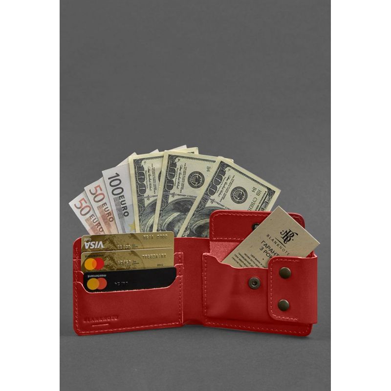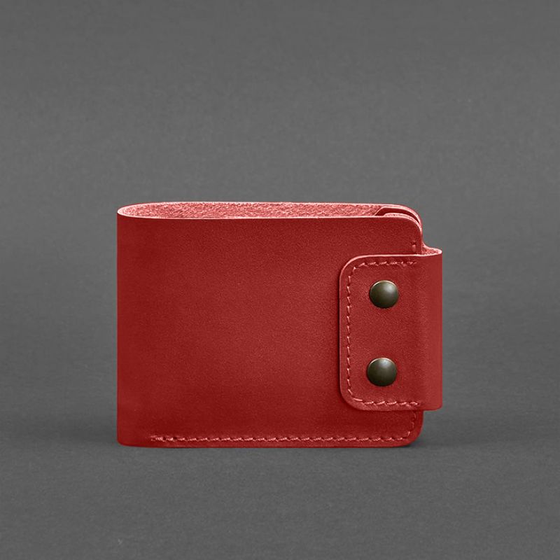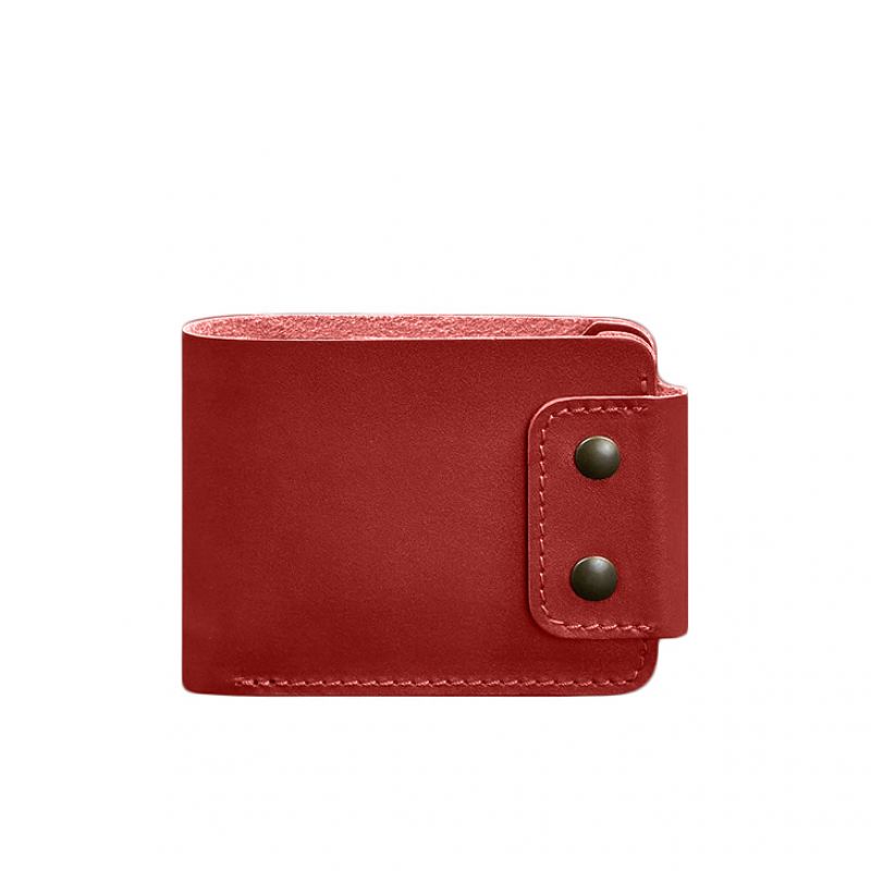 Универсальное портмоне из натуральной кожи в красном цвете. Внутри два отделения для купюр, несколько слотов для платежных пластиковых карт и отделение на кнопке для монет и других мелочей. Портмоне имеет компактные габариты, что позволяет носить его даже в кармане брюк или пиджака.