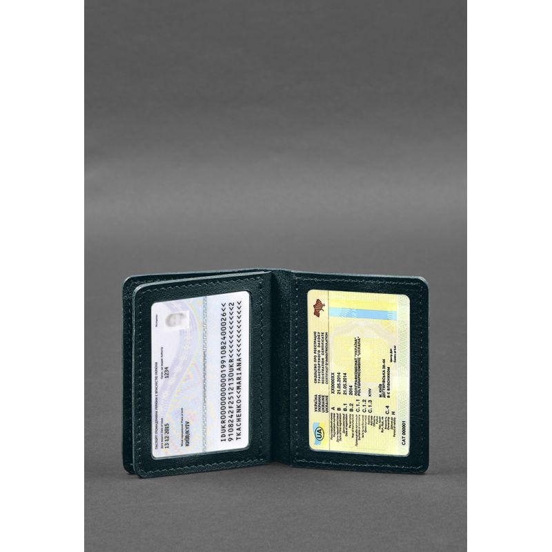 Кожаная обложка для водительского удостоверения, ID и пластиковых карт 2.0 зеленая