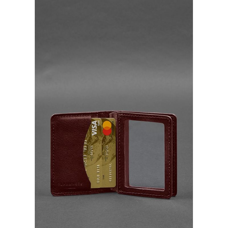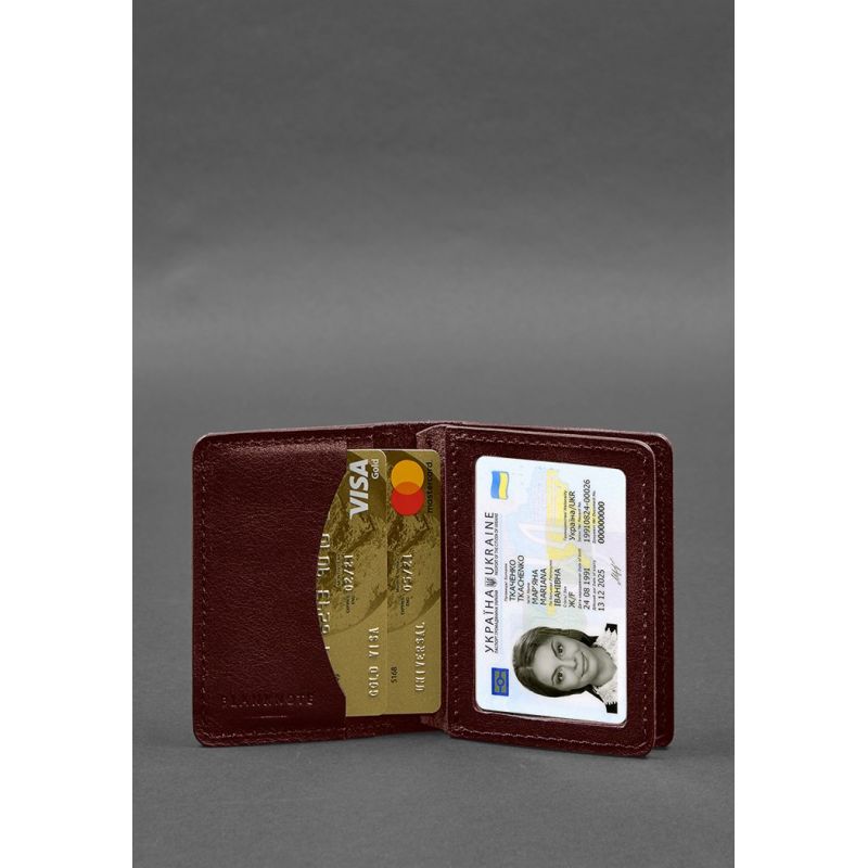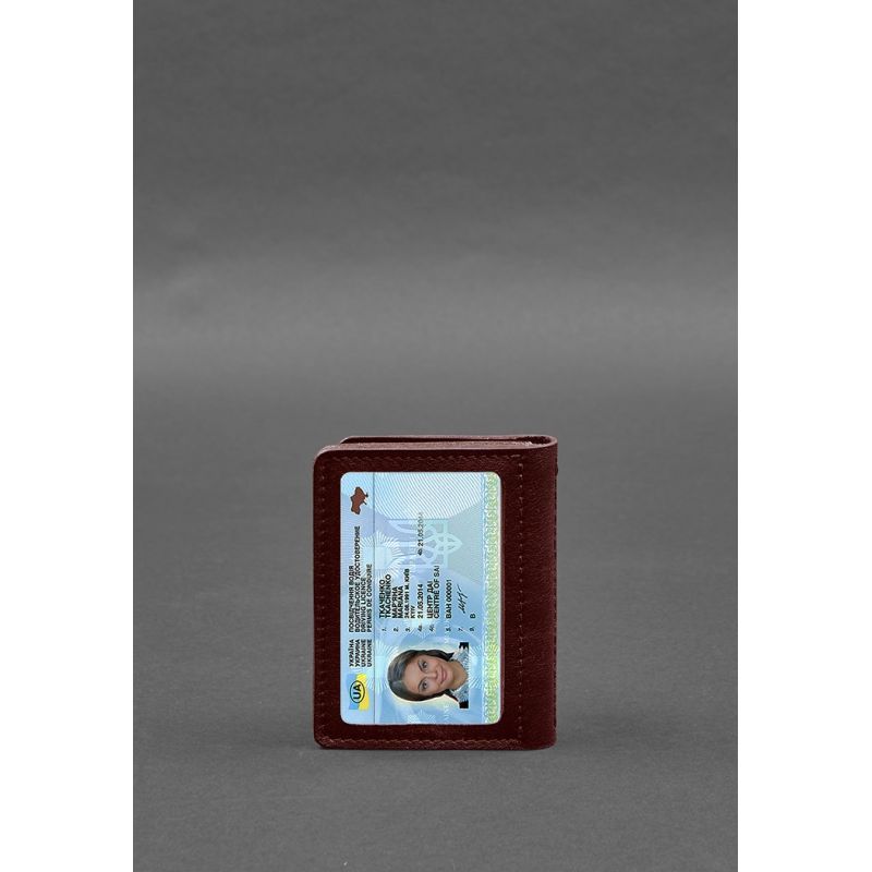 Кожаная обложка для водительского удостоверения, ID и пластиковых карт 2.0 бордовая (BN-KK-2-vin)