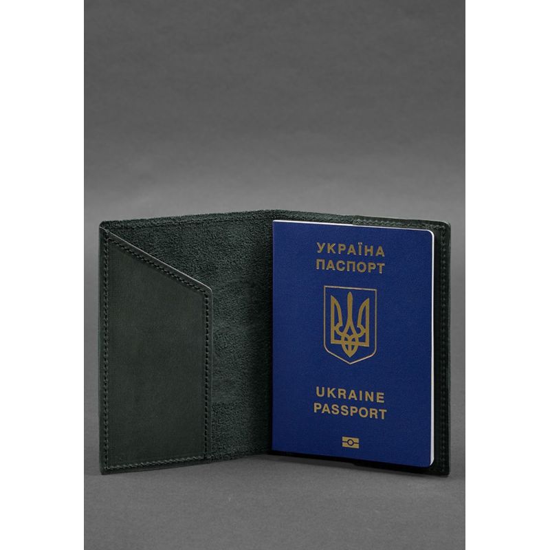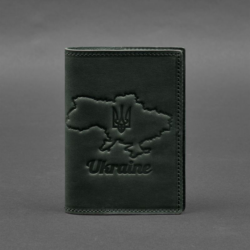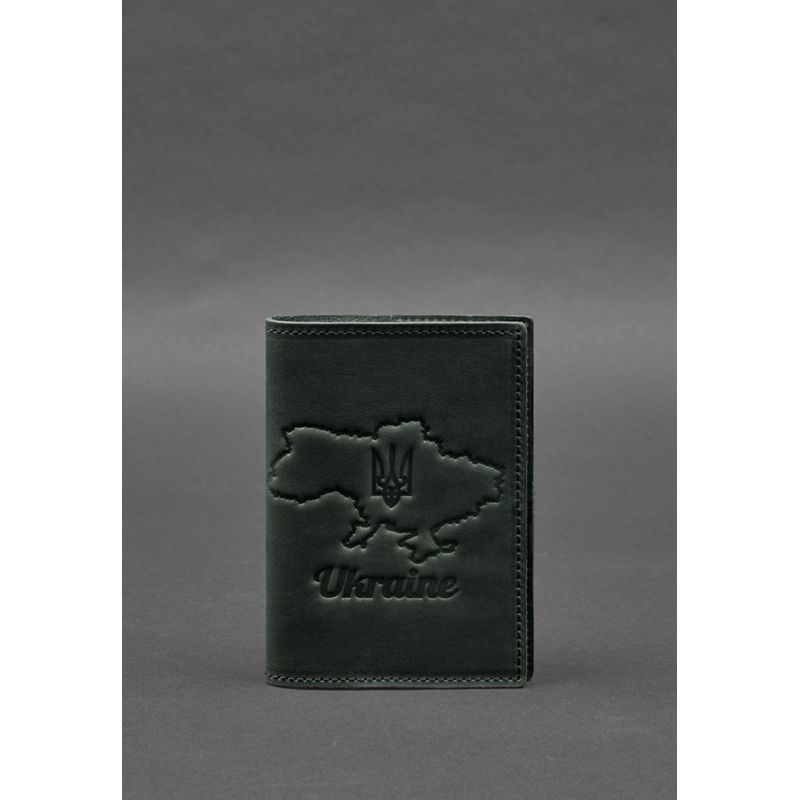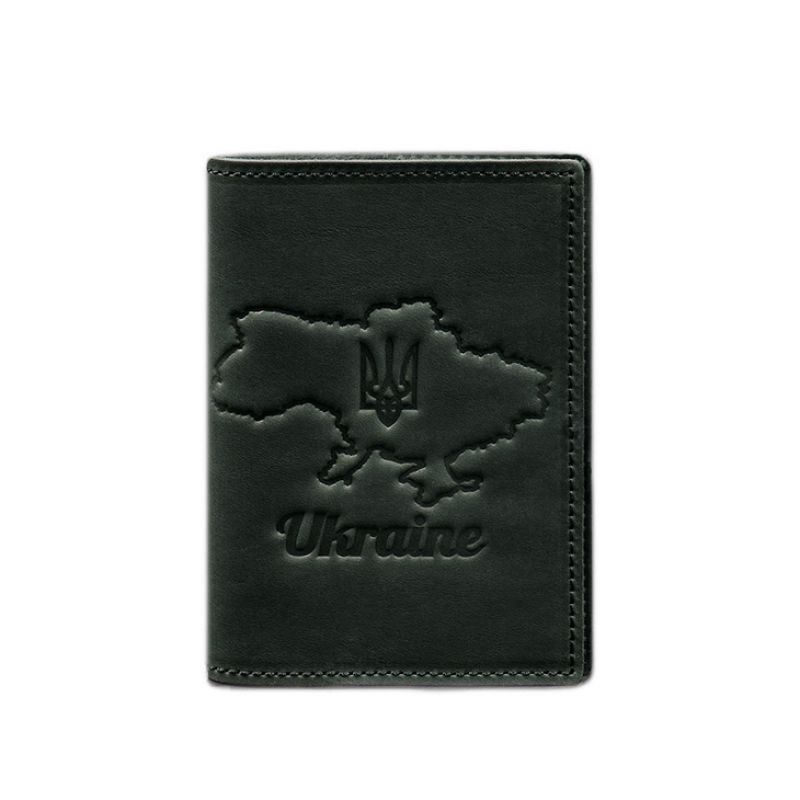 Кожаная обложка для паспорта с картой Украины зеленый Crazy Horse