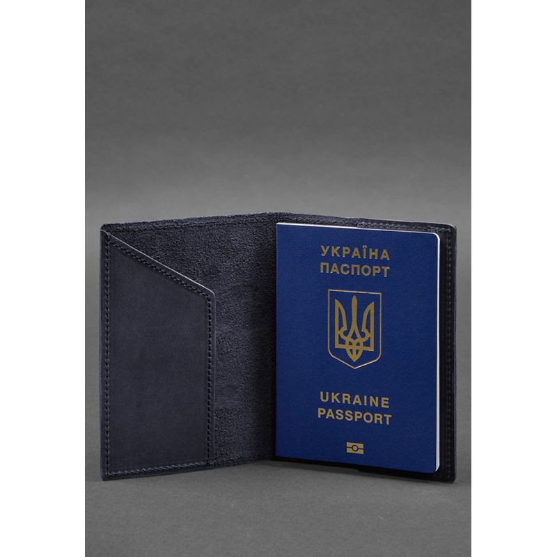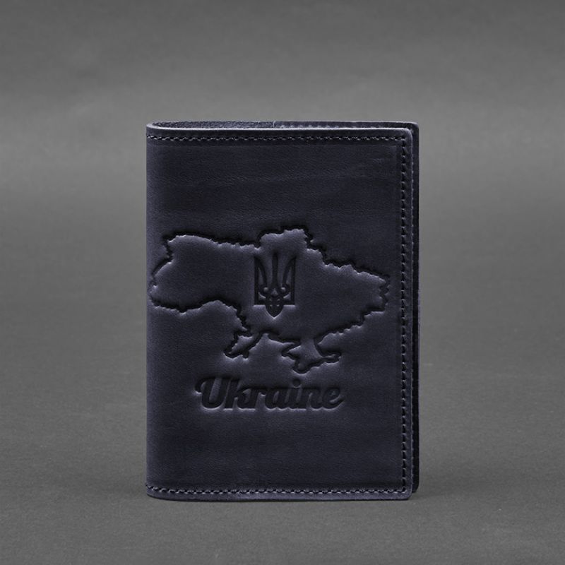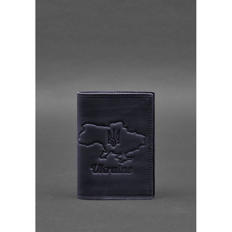 Кожаная обложка для паспорта с картой Украины синий Crazy Horse