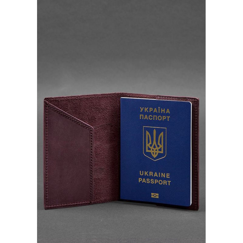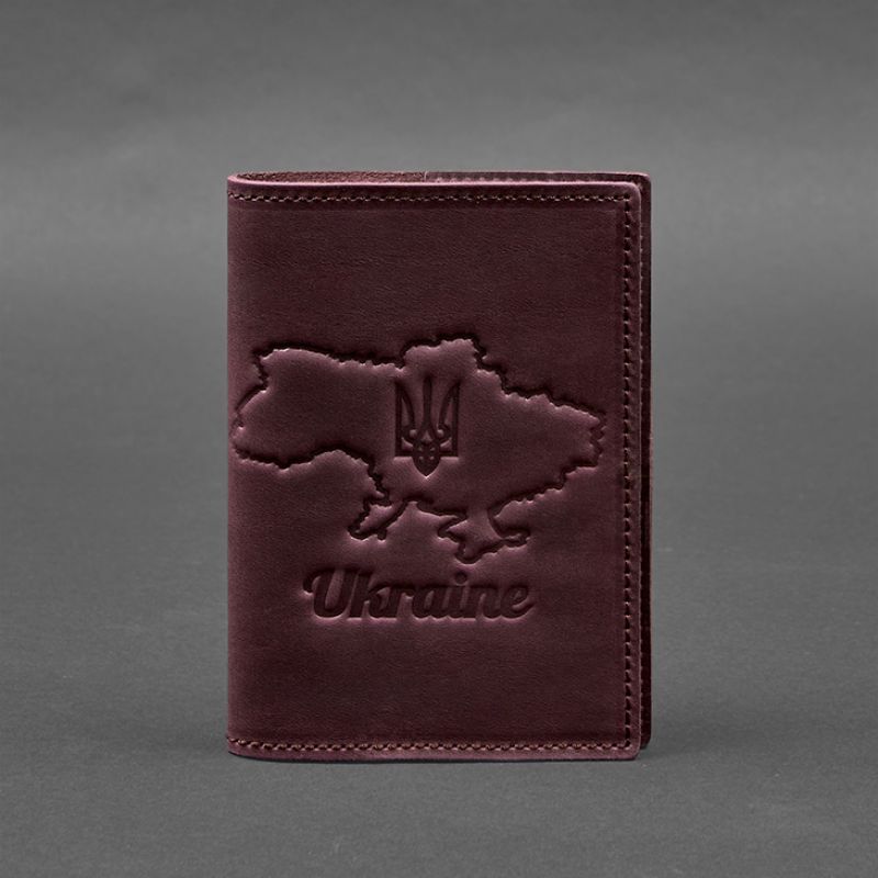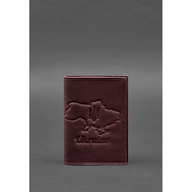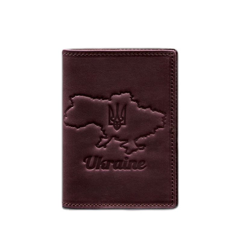 Кожаная обложка для паспорта с картой Украины бордовый Crazy Horse
